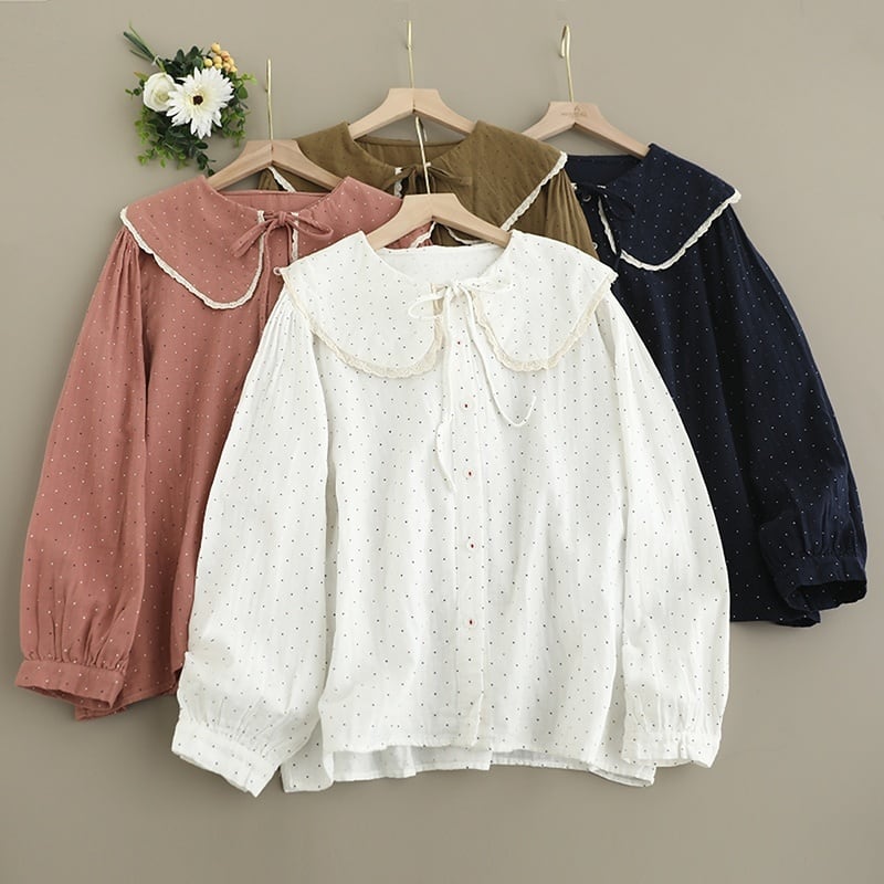フロントリボンピーターパンカラードット柄ブラウス W1171