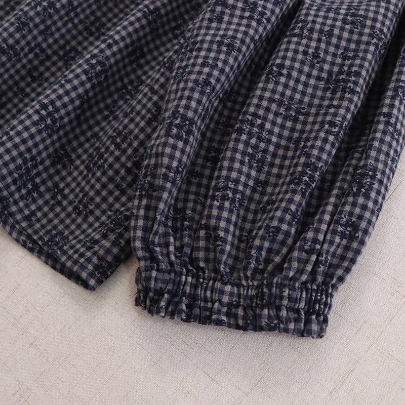 ギンガムチェック柄フラワーバルーンスリーブブラウス W1200