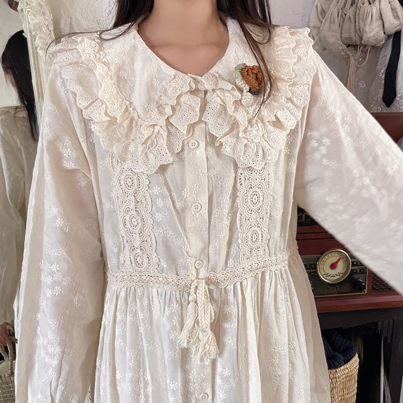 刺繍とレースが贅沢にあしらわれたワンピース。