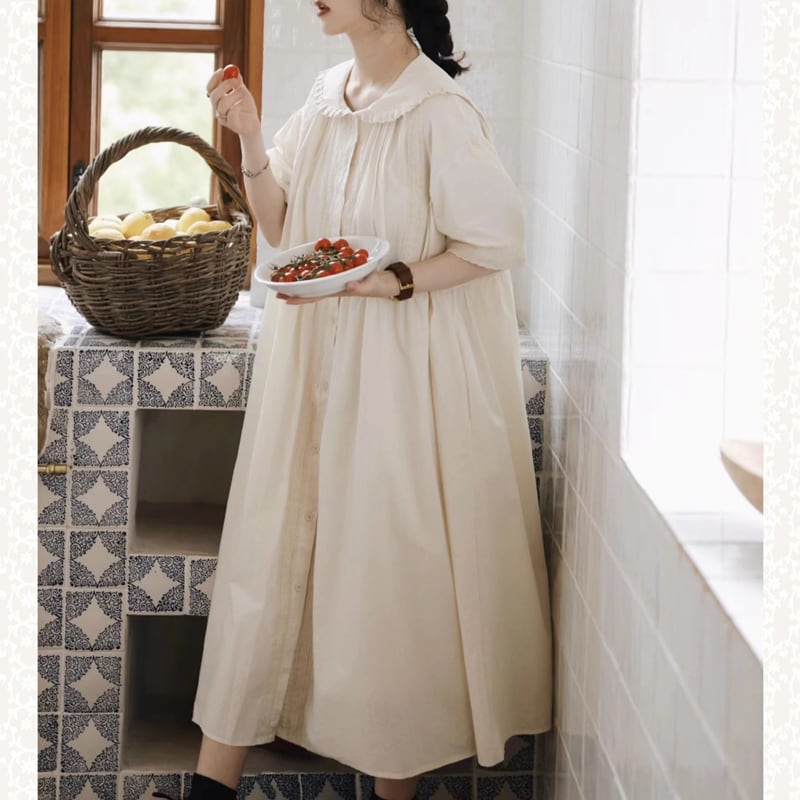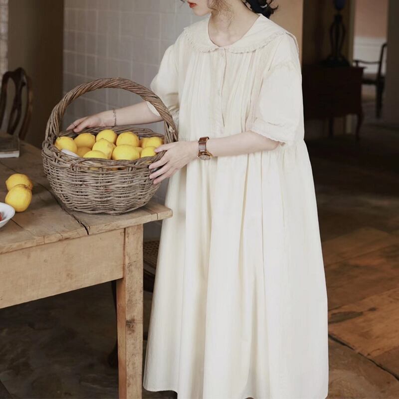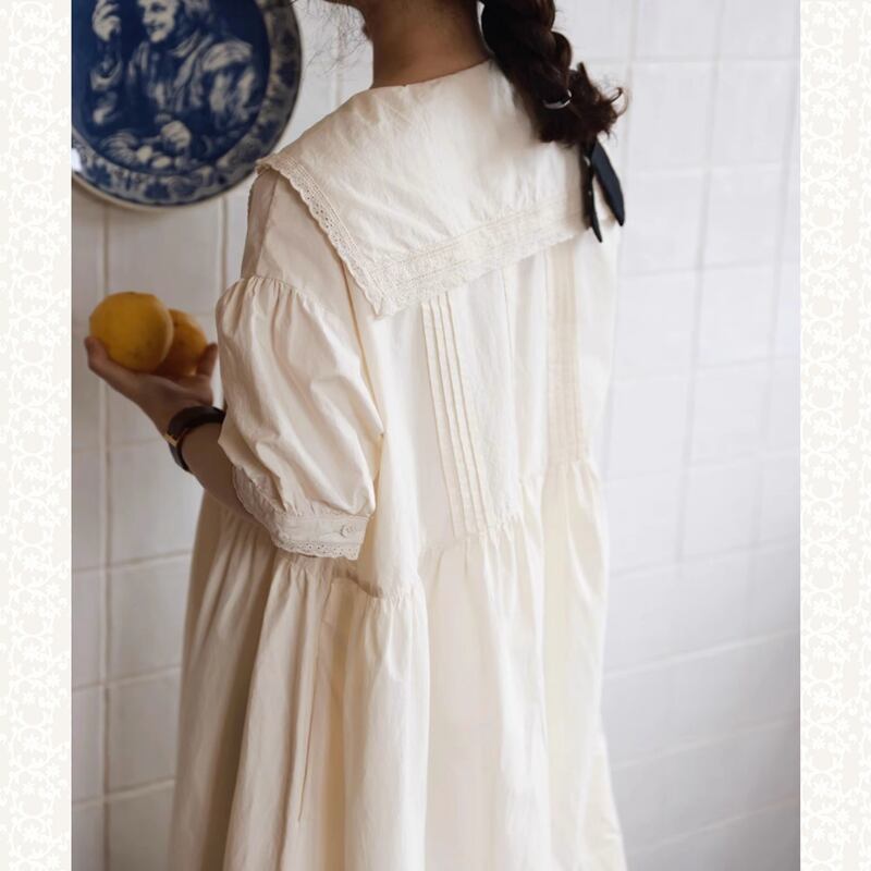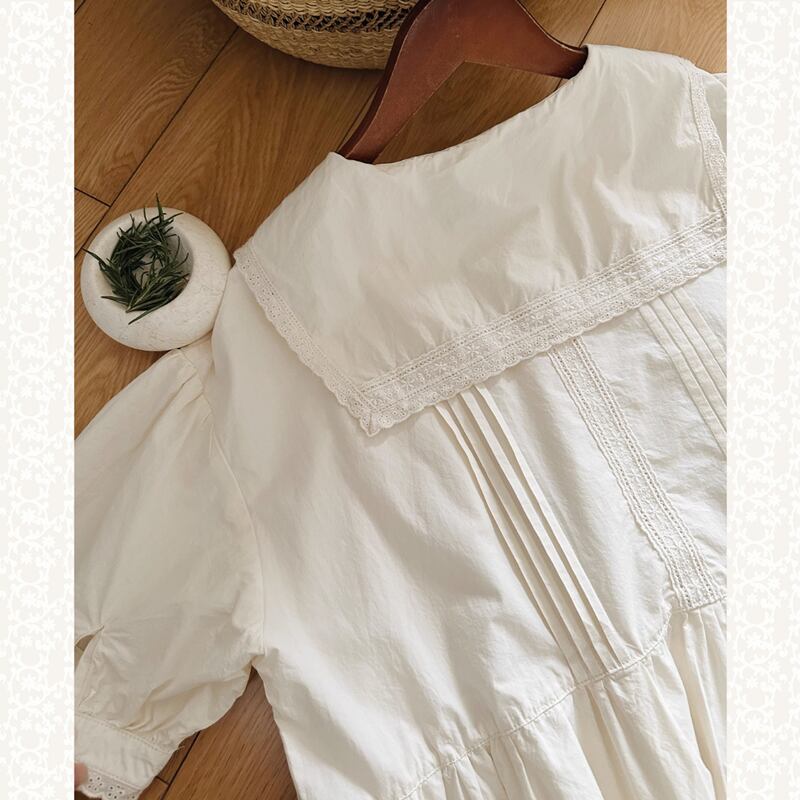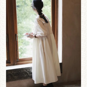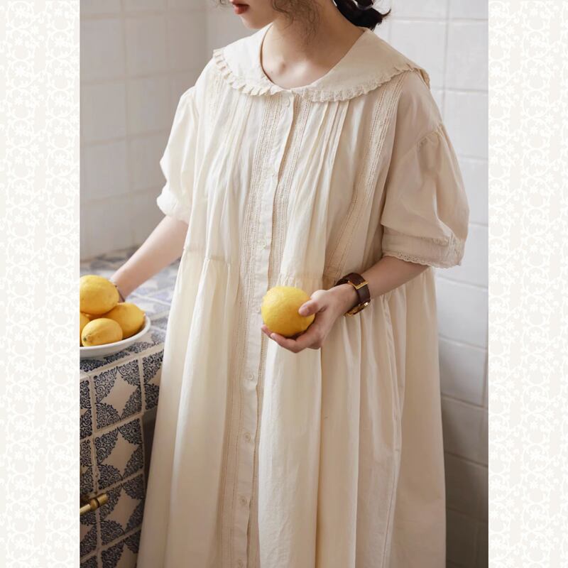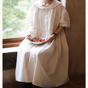 ラペルレースステッチコットンワンピース W1268
