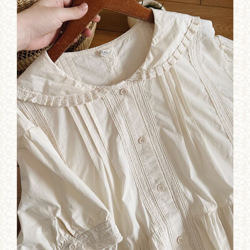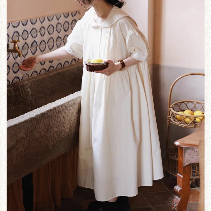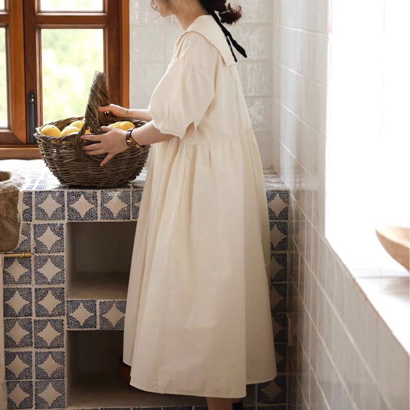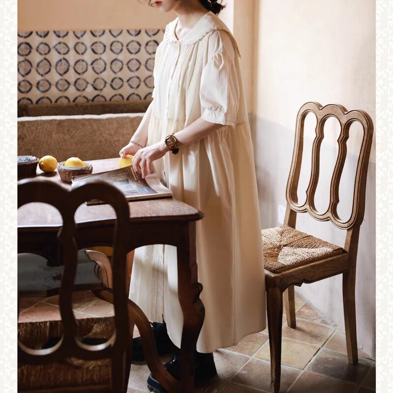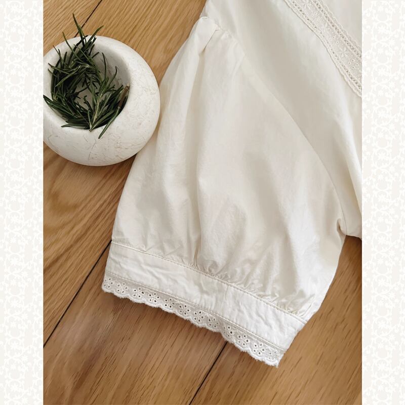 ラペルレースステッチコットンワンピース W1268