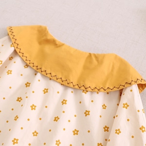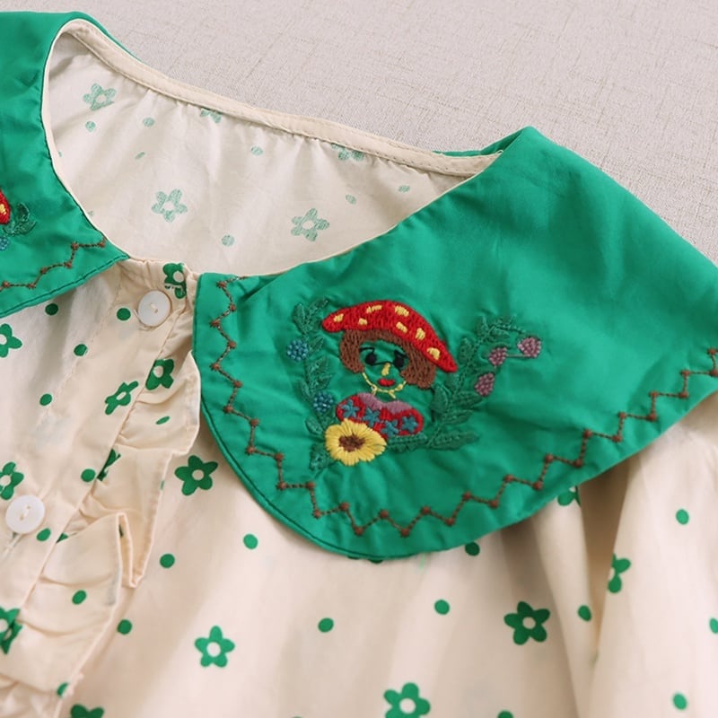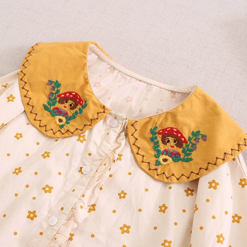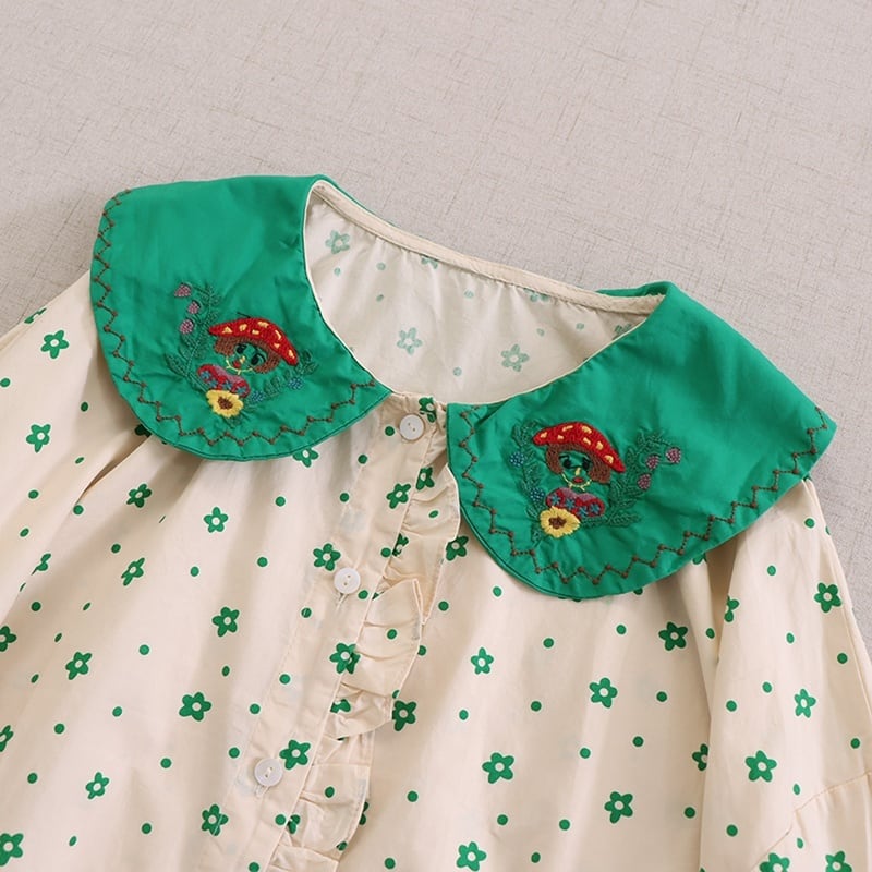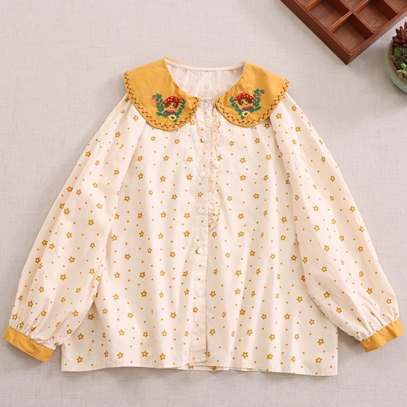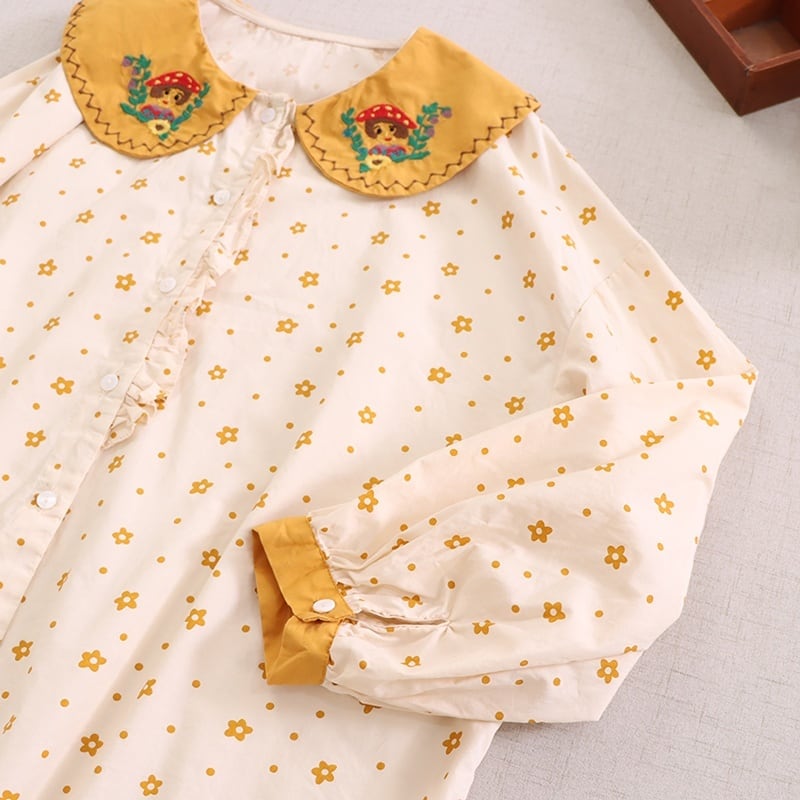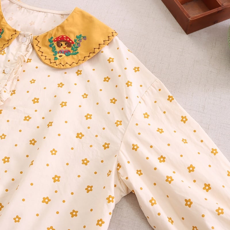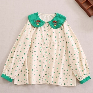 小花柄プリントに、刺繍入りの襟がアクセントになったロングスリーブブラウス。