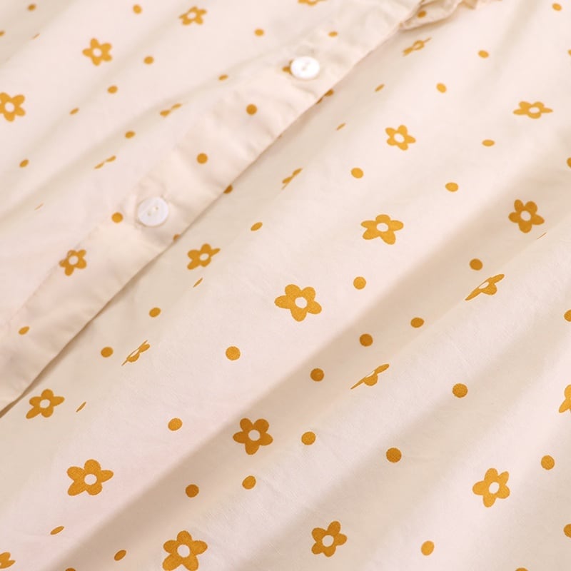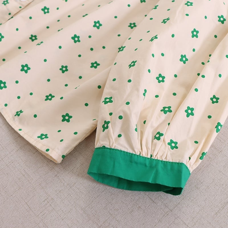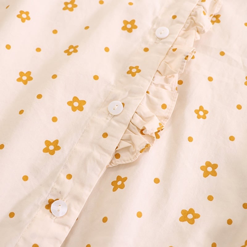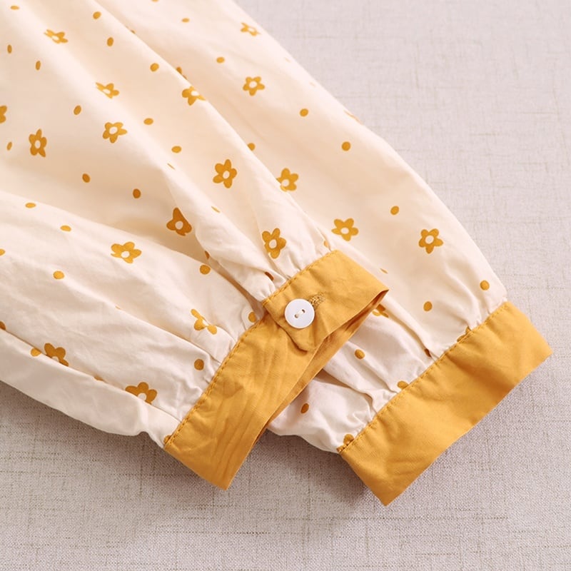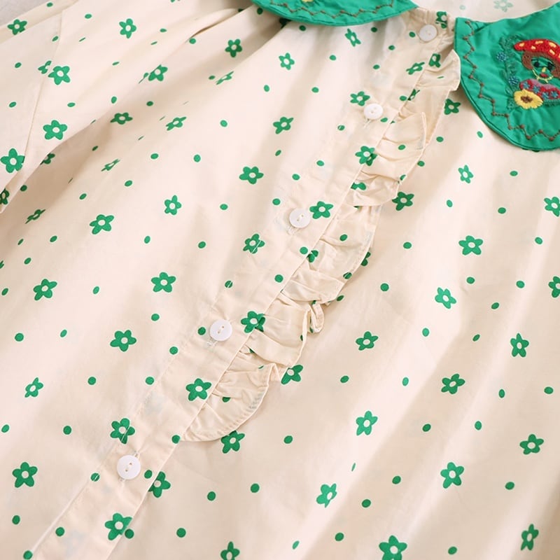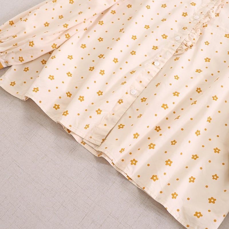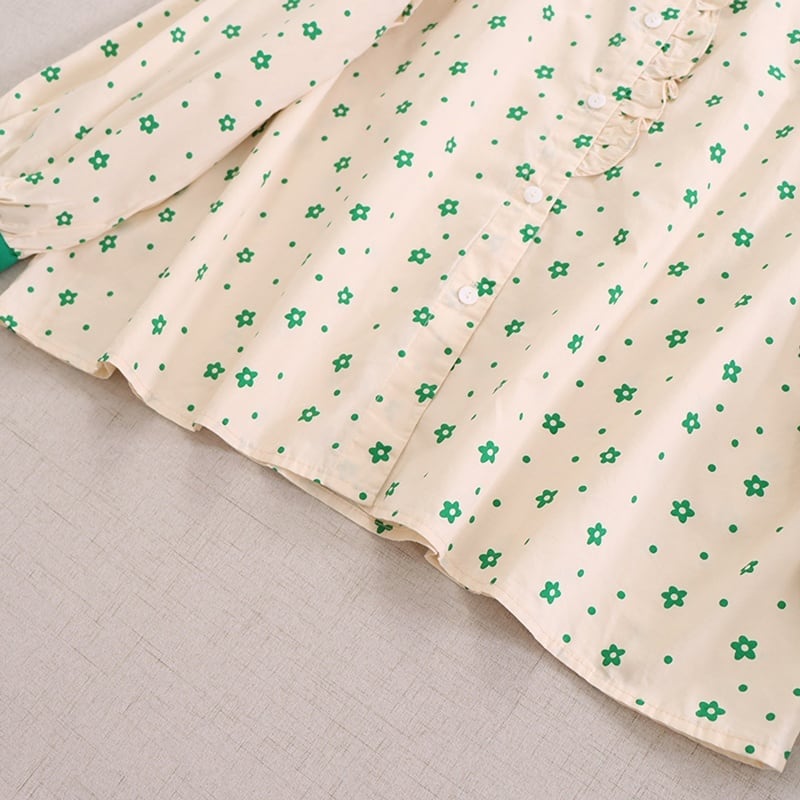 刺繍カラー小花柄プリントロングスリーブブラウス W1299