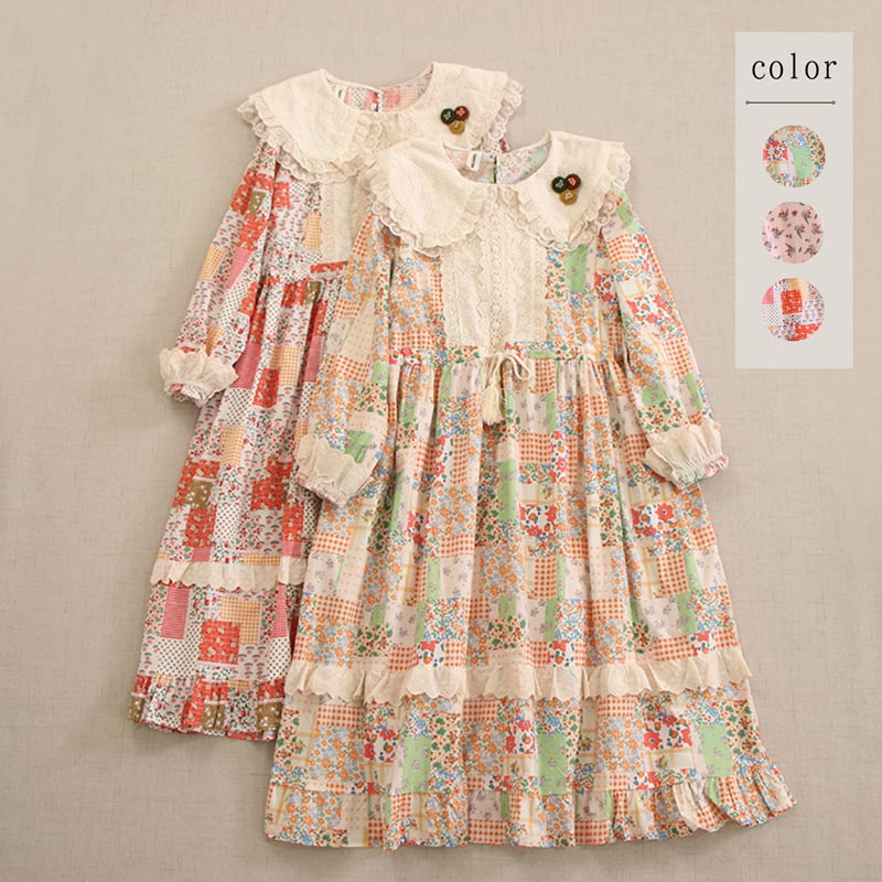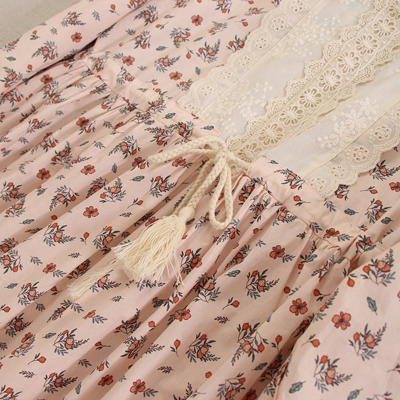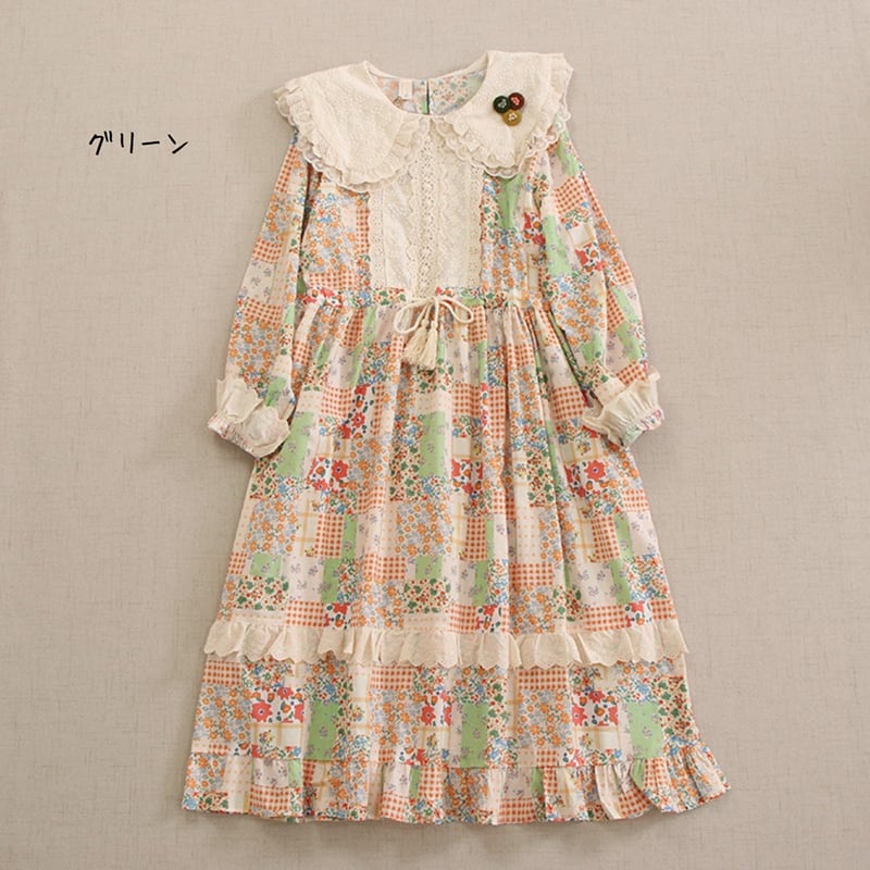 大きなドールカラー花柄レース装飾ドローストリングワンピース W1470