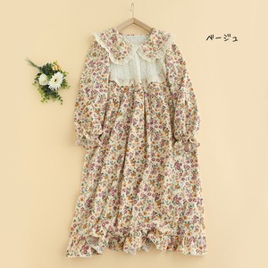 ぬくもりあるニットデザインと花柄コーデュロイが魅力のワンピース。