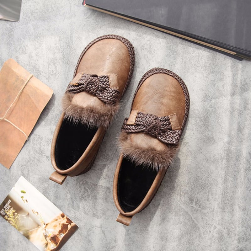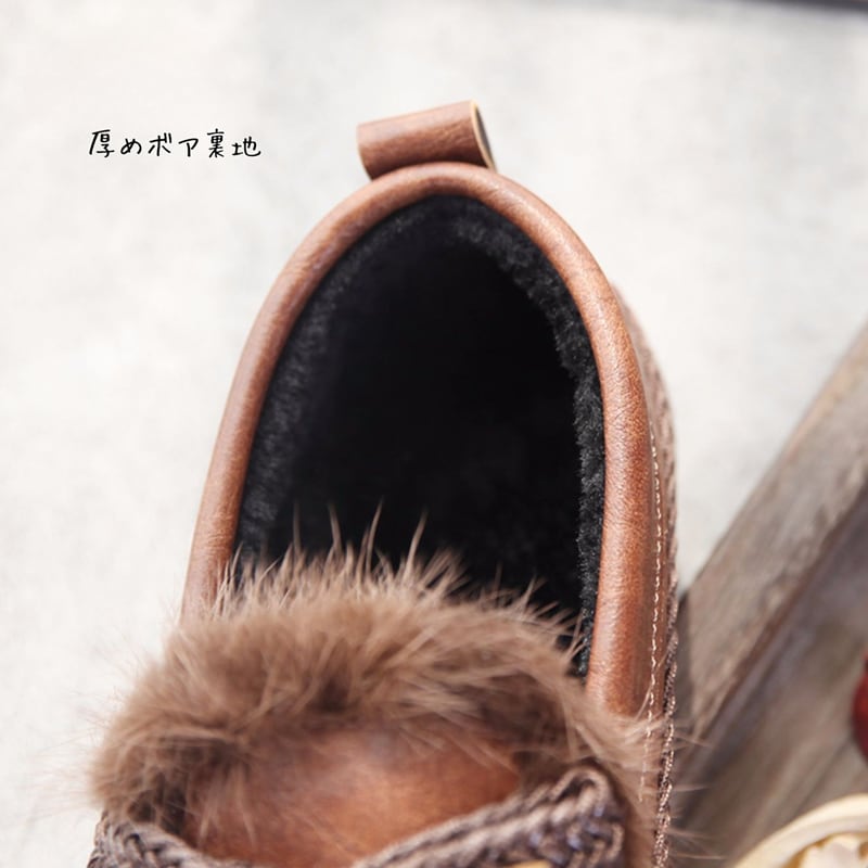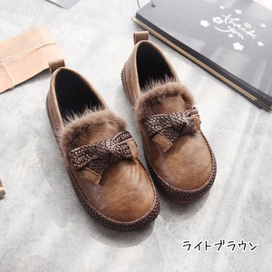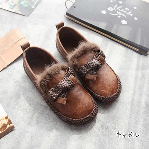 ファー飾り付き編み込みデザインフラットシューズ W1478