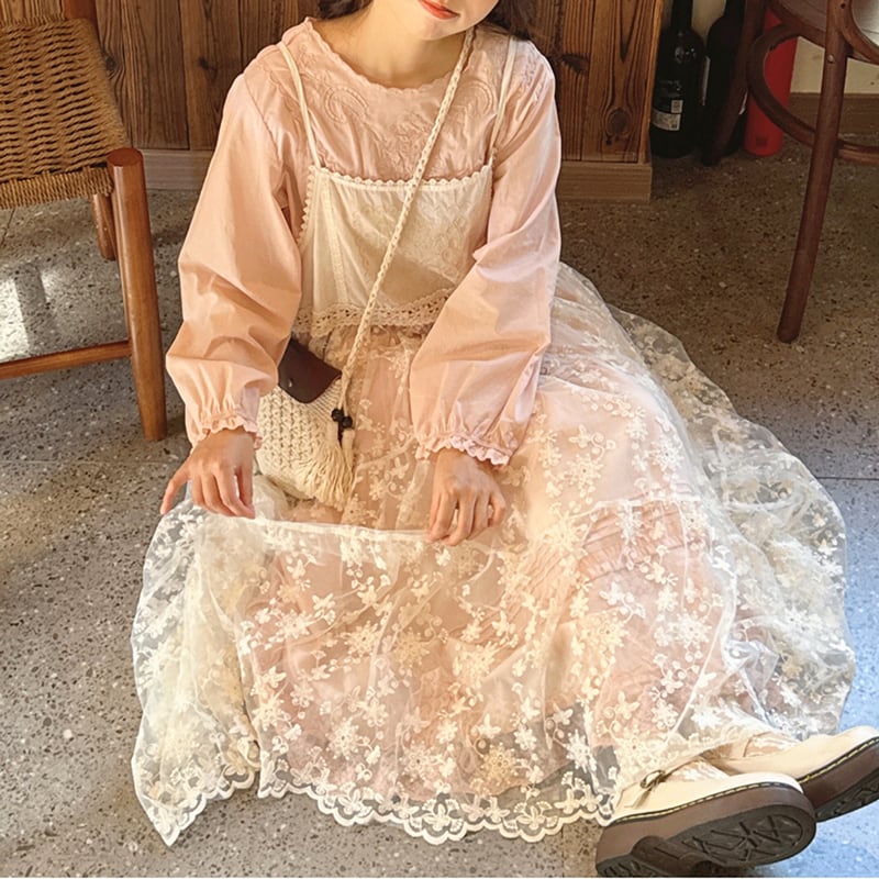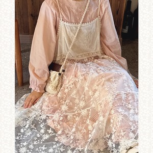 中空レースの切り替えが涼しげで華やかなシアーキャミソールワンピース。