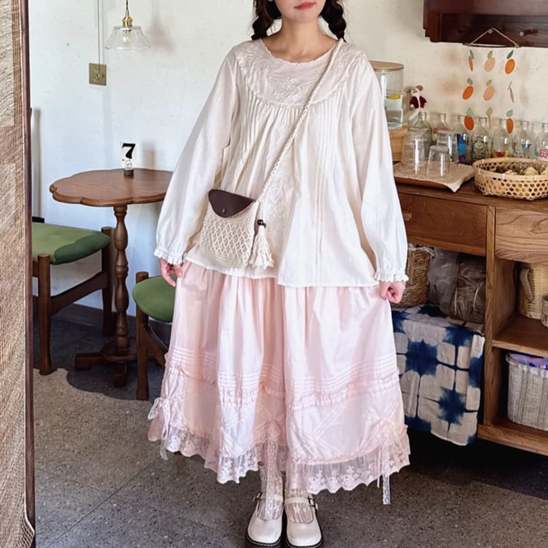 レトロな刺繍が胸元を彩るロングスリーブブラウス。
