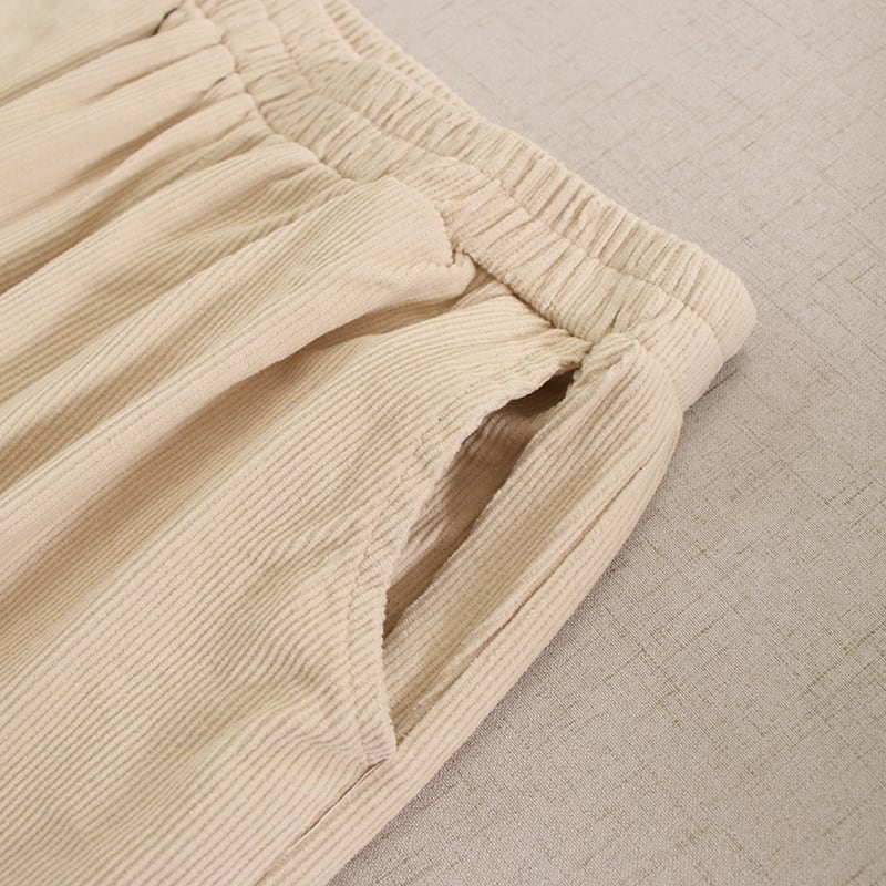 花刺繍がさりげなく華を添えるコーデュロイのハーレムパンツ。