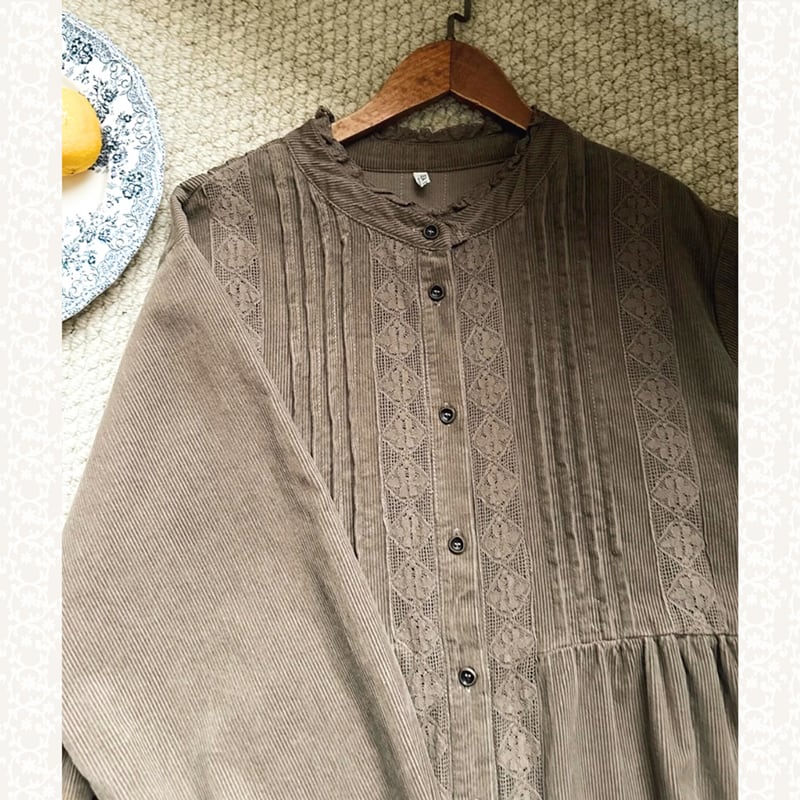 木漏れ日のようにやさしい雰囲気を纏える、レトロレース×プリーツのコーデュロイワンピース。