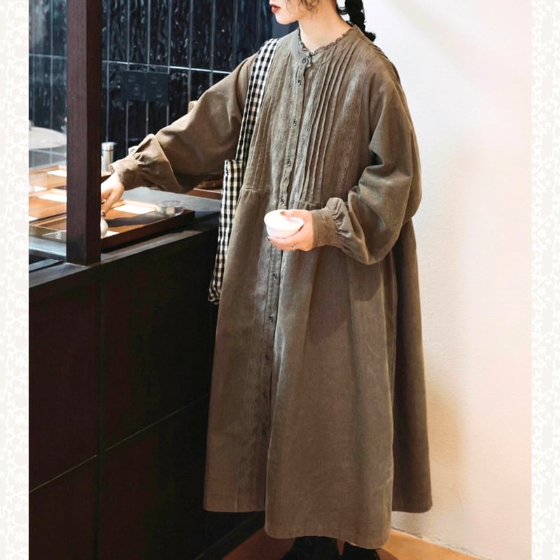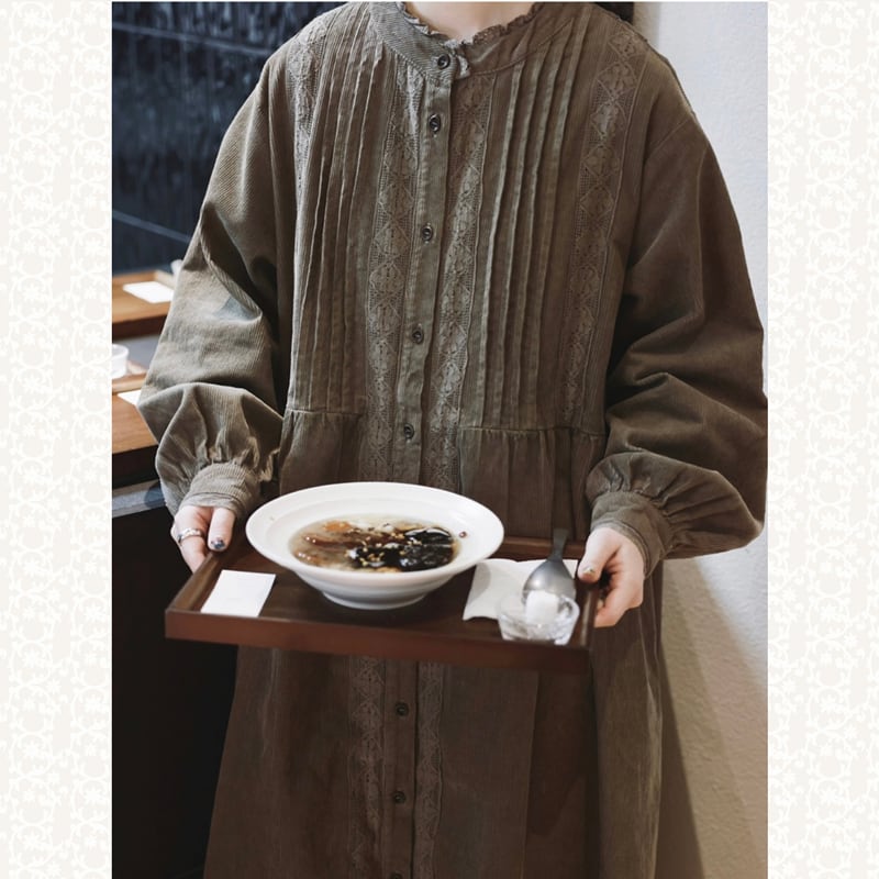 レトロレースプリーツコーデュロイワンピース W1503