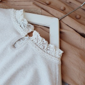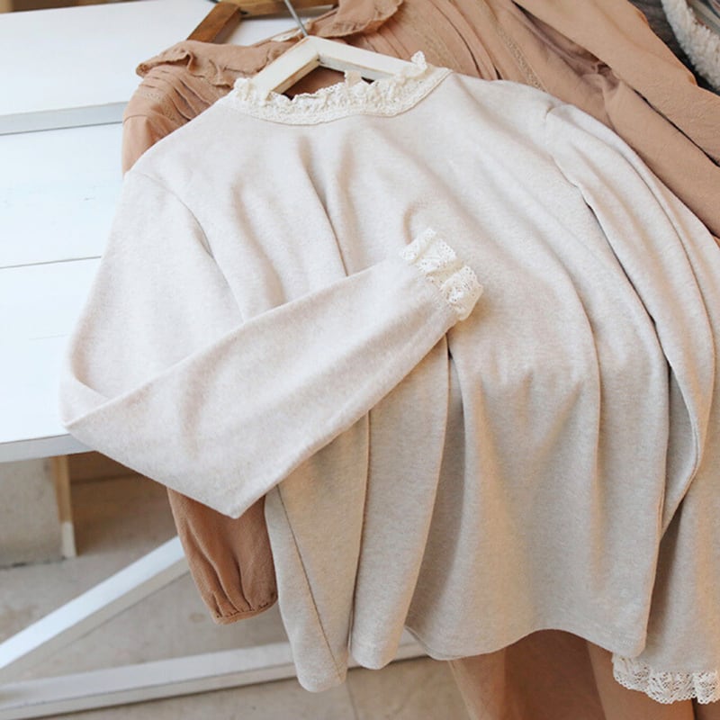 レース付きボトルネック長袖コットンシャツ W1506