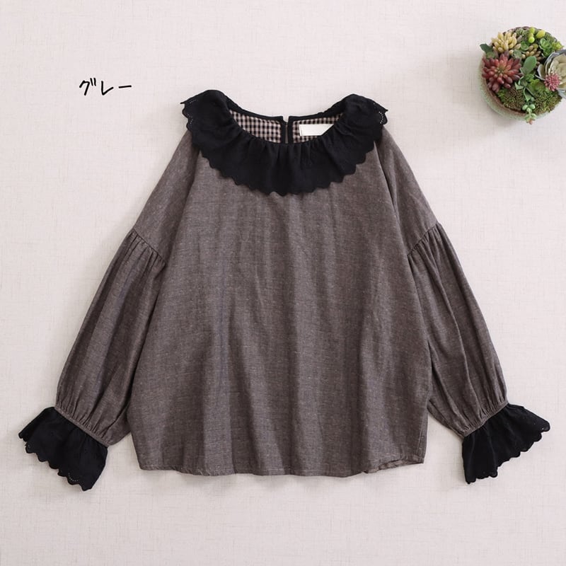 繊細なレースをあしらったロータスカラーが華やかなプルオーバーシャツ。