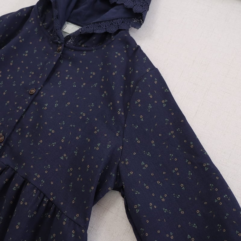 フード付き花柄フロントボタンコート風ワンピース W1525