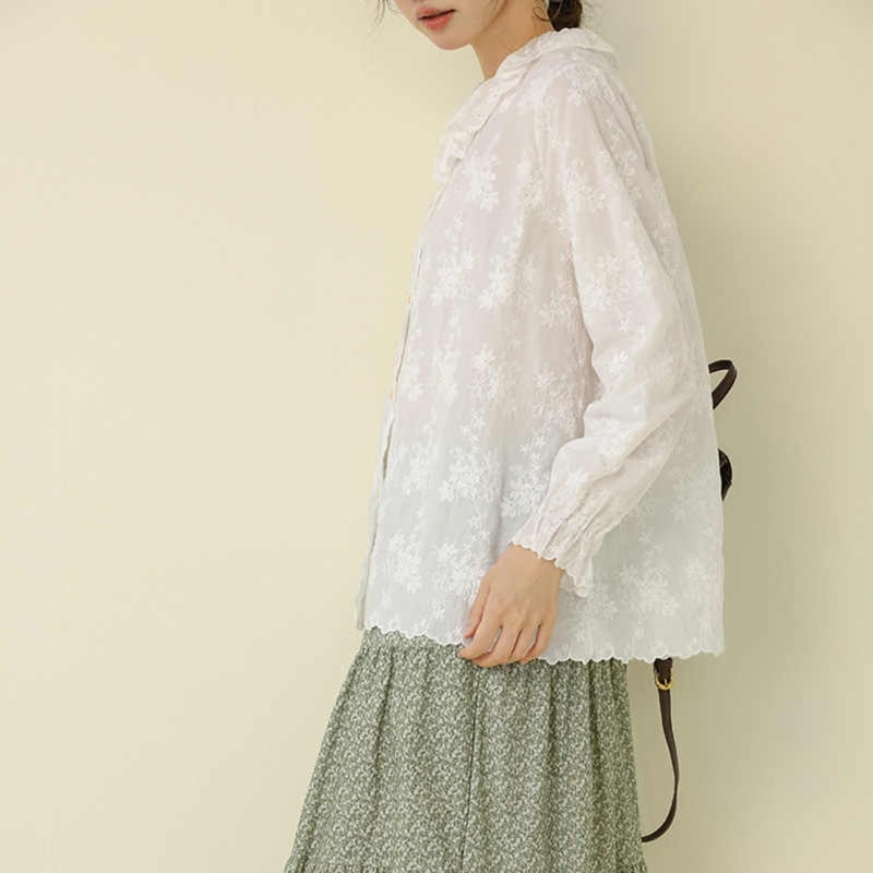 重ね着用刺繍レース襟ナチュラルブラウス W1527