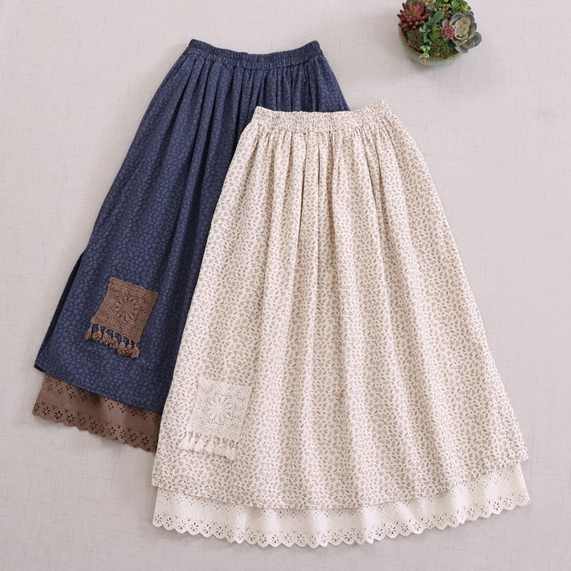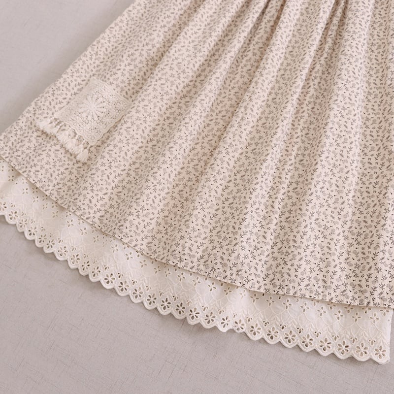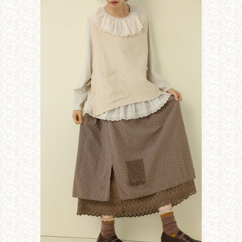 パッチワーク刺繍レースサイドスリット花柄スカート W1529