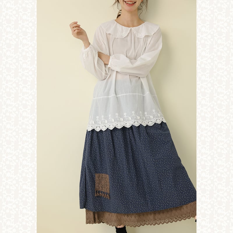 小花柄サイドスリットレース裾スカート W1488