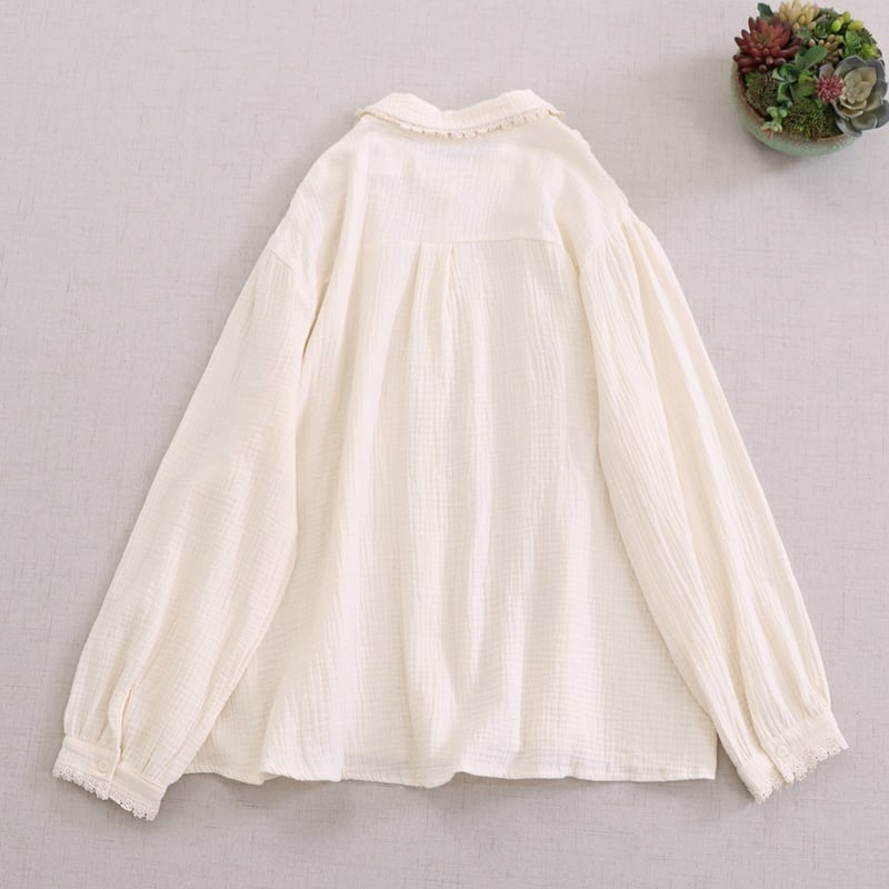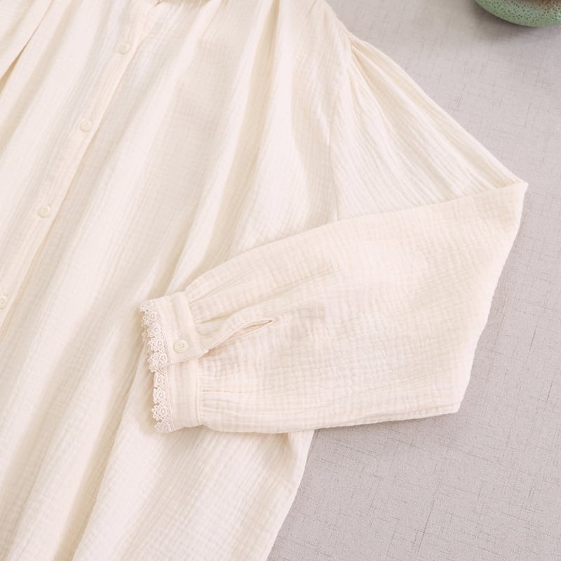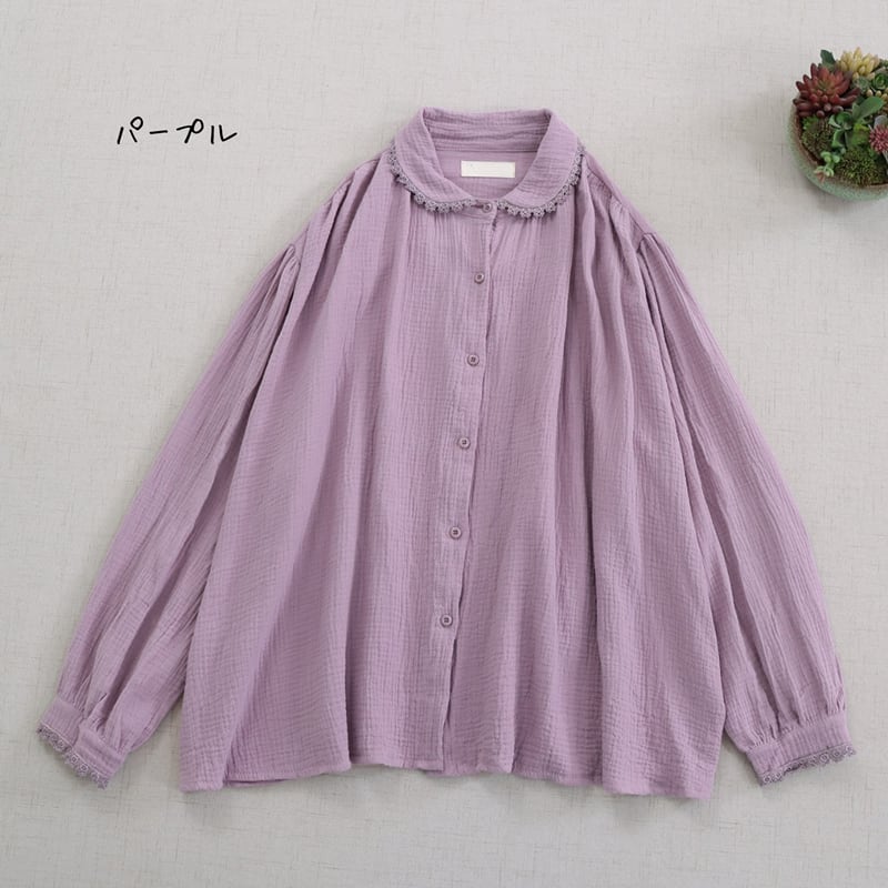 ナチュラルレースコットンロングスリーブブラウス W1531