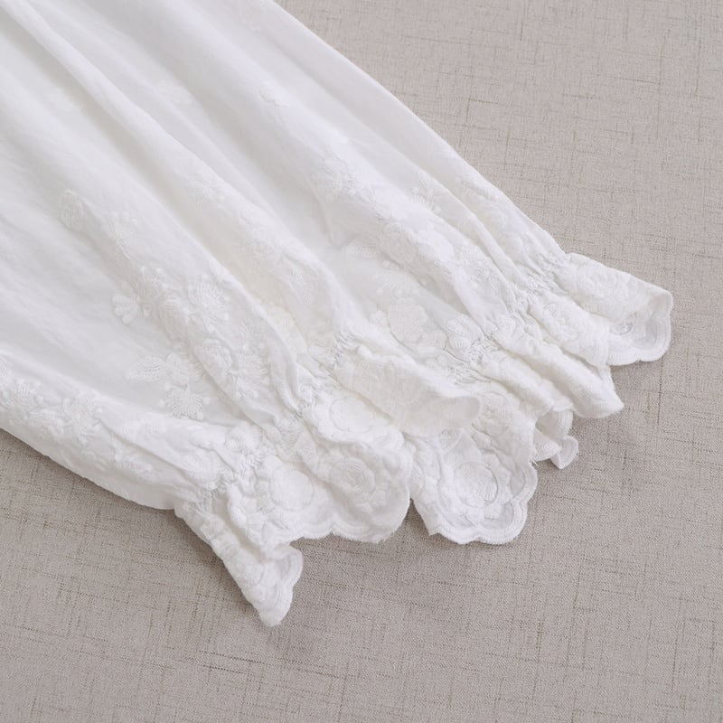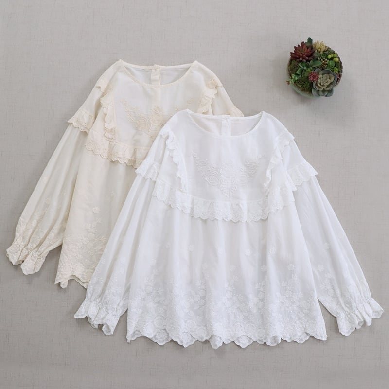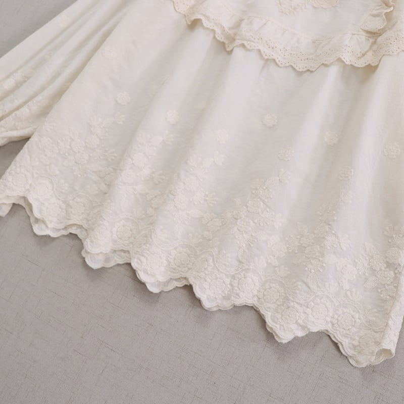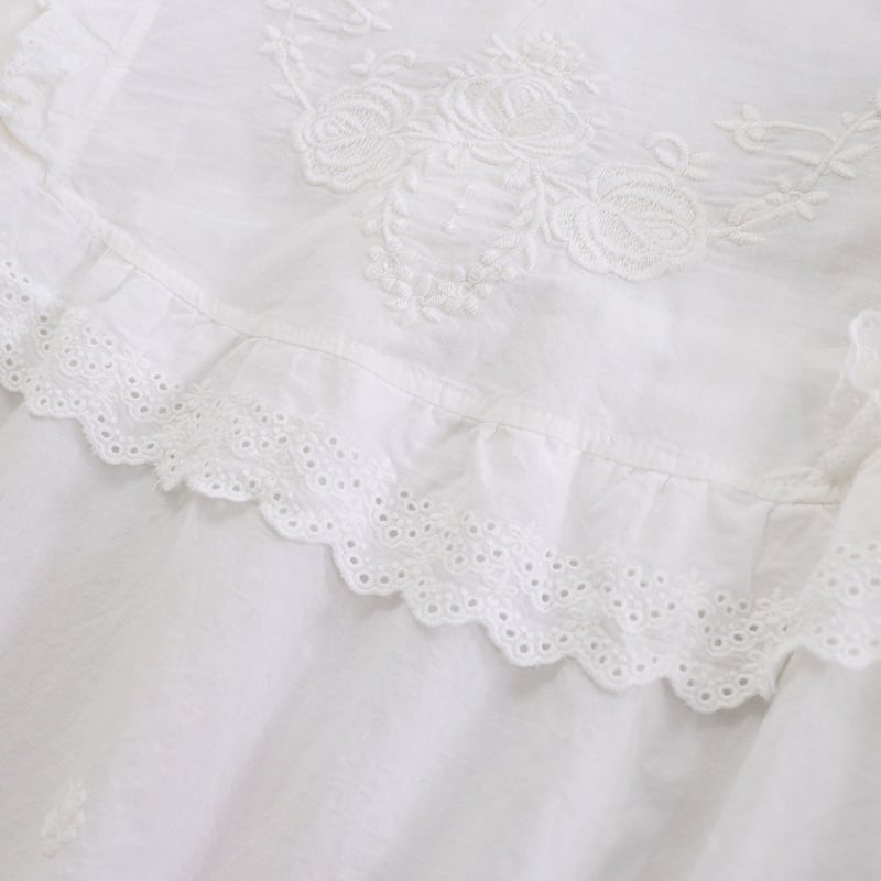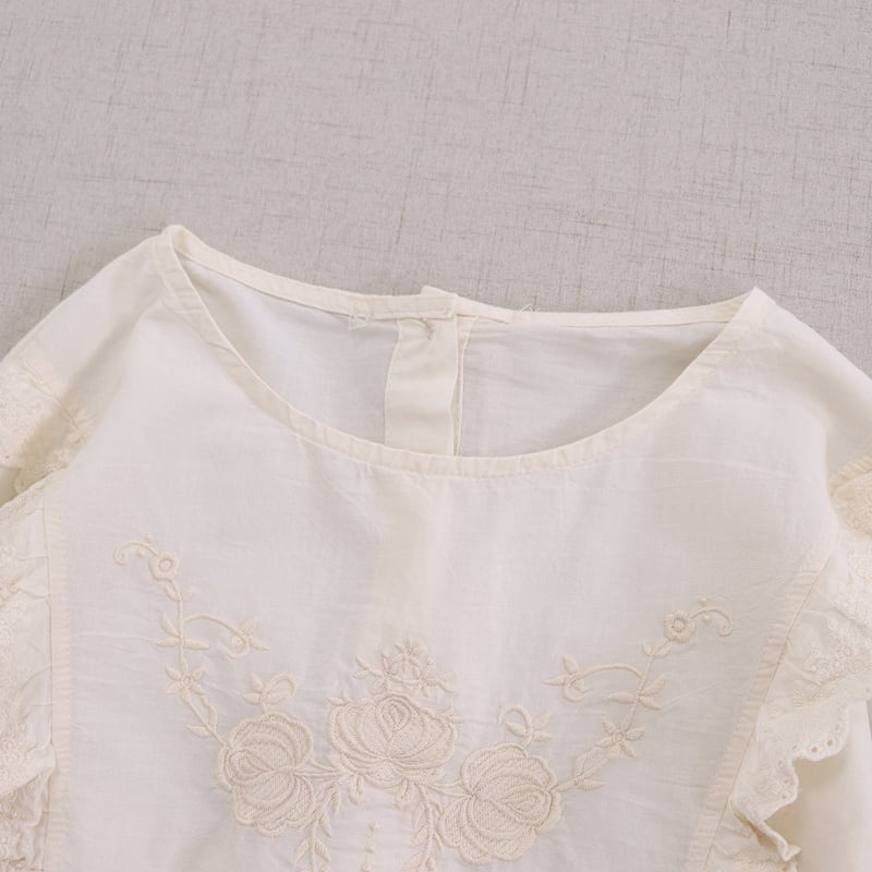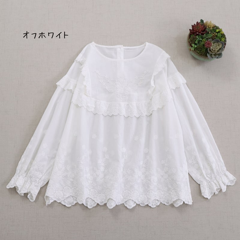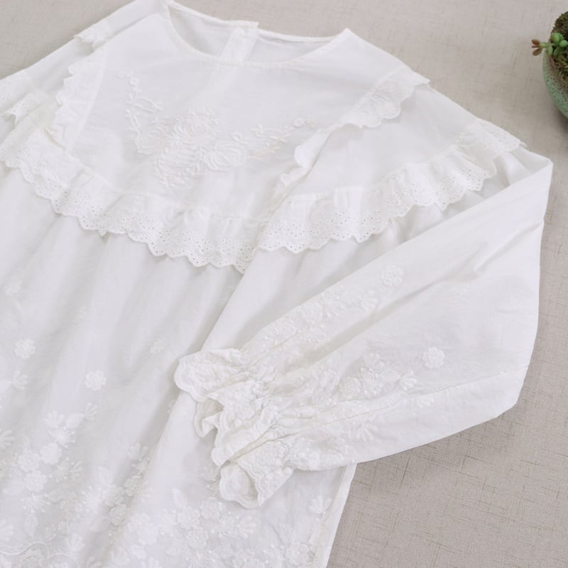 コットン刺繍フリルデザインプルオーバーシャツ W1533