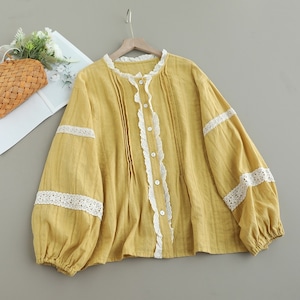 レースラウンドネックパフスリーブブラウス W1536