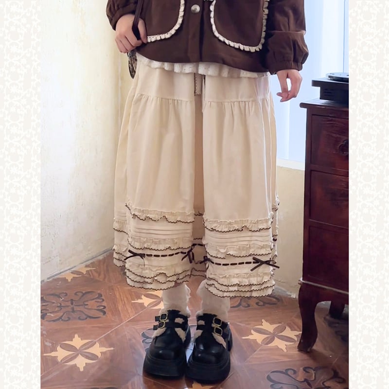 リボンデザインが可愛らしいアクセントになったコーデュロイフリルスカート。