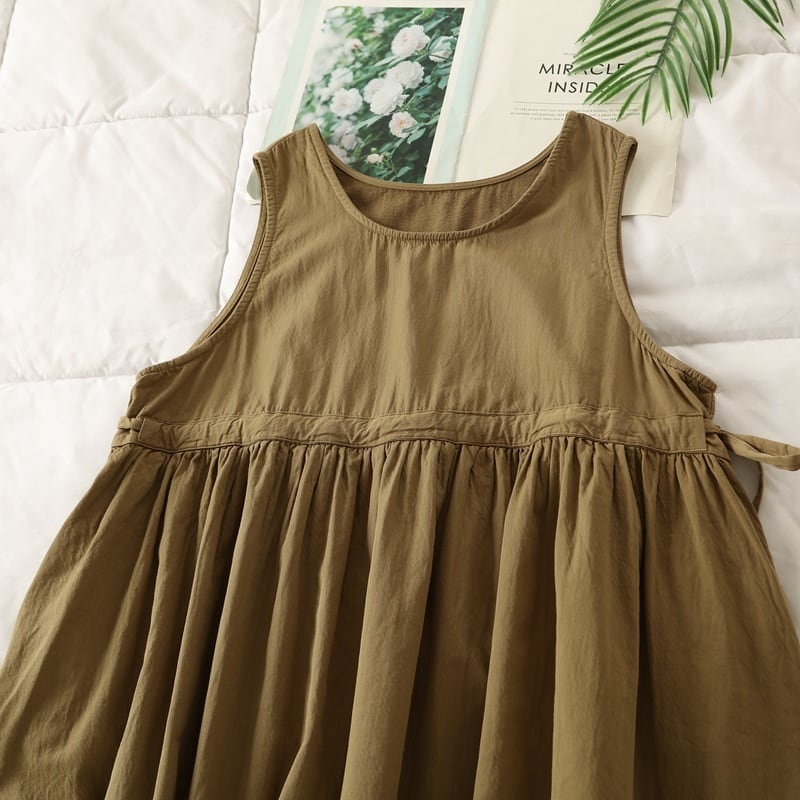 シンプルで柔らかな印象のノースリーブドローストリングワンピース。