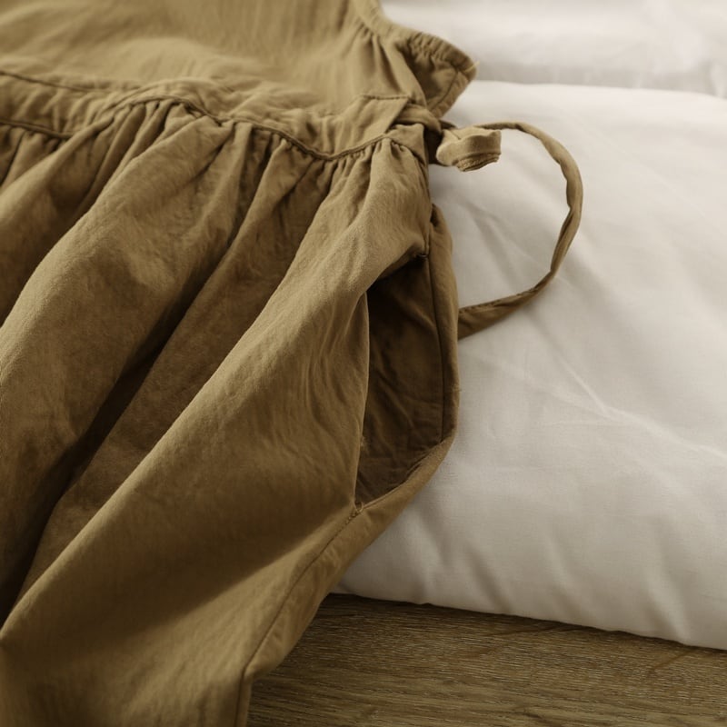 ウエストの紐でシルエットを調整でき、さりげない立体感を演出します。