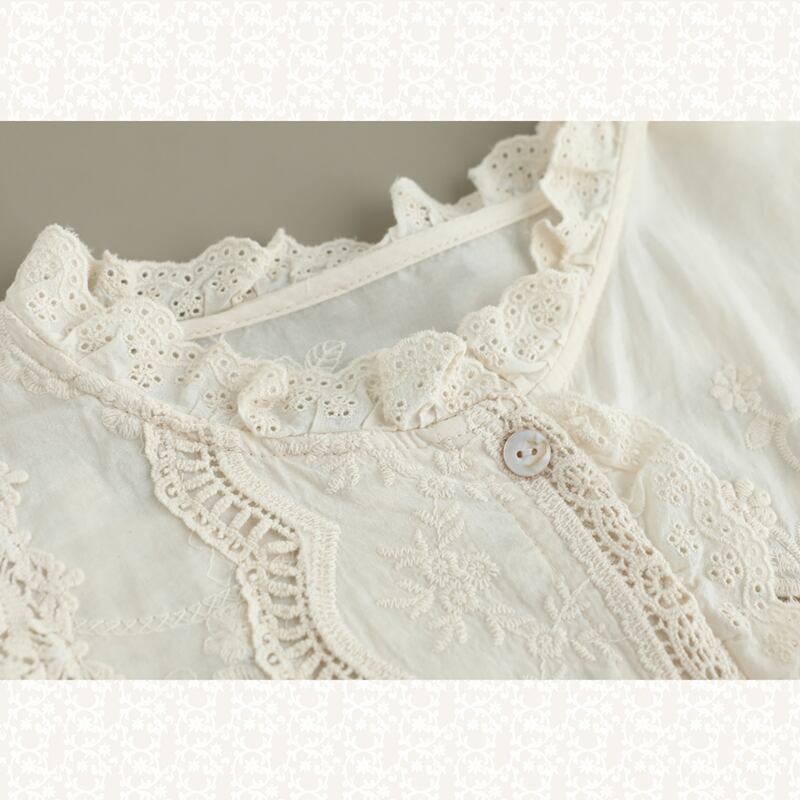 立体的なフラワー刺繍とレースが華やかなアクセントのデザインブラウス。