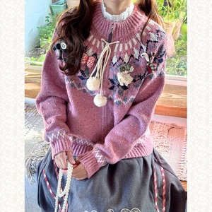 リボンや人形モチーフが可愛らしい、森ガール風ジャガードセータージャケット。