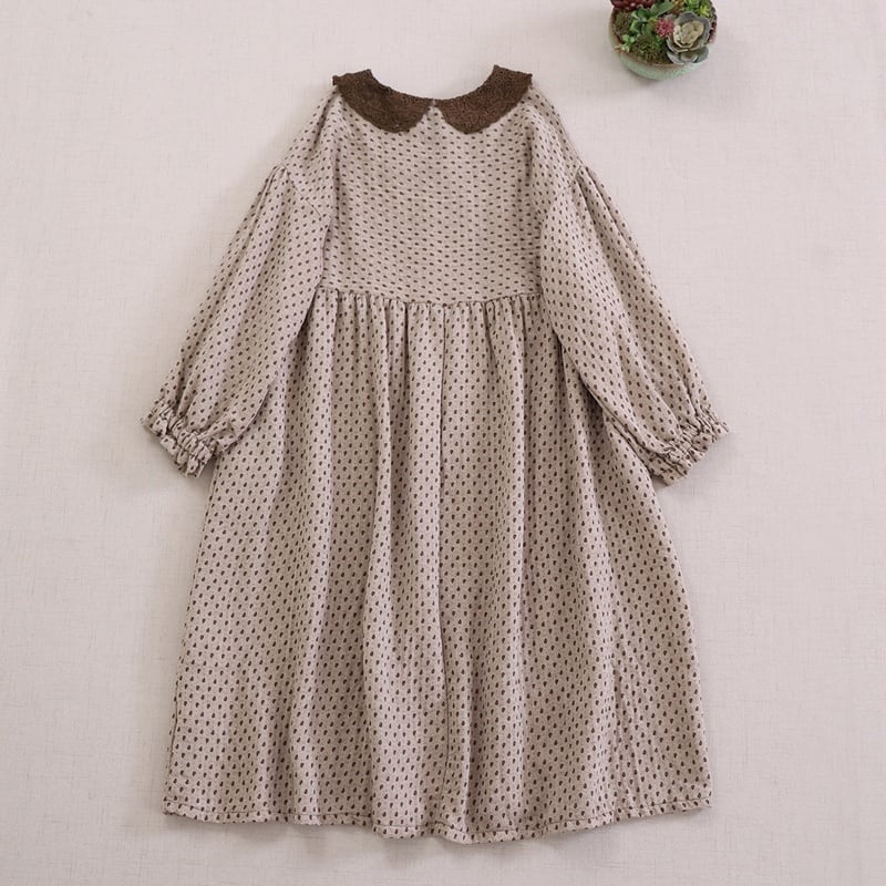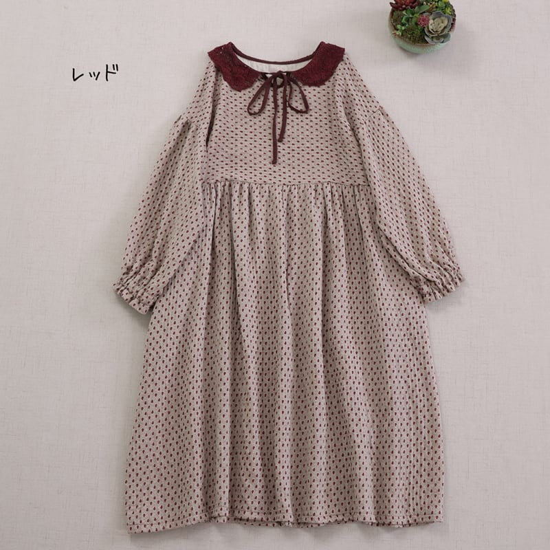 繊細なレース襟が上品なアクセントになったプリントワンピース。
