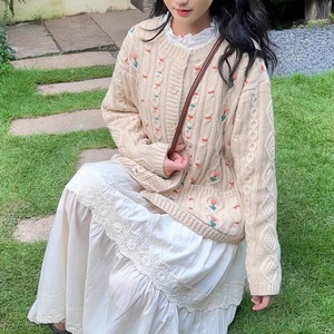 小花柄刺繍ケーブルニットカーディガン W1585