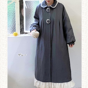立体的な花ボタンが可憐に咲く、裾レースデザインのコート。