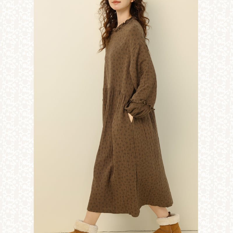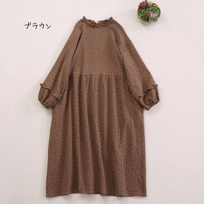ポイント袖フリル小花柄ワンピース W1592