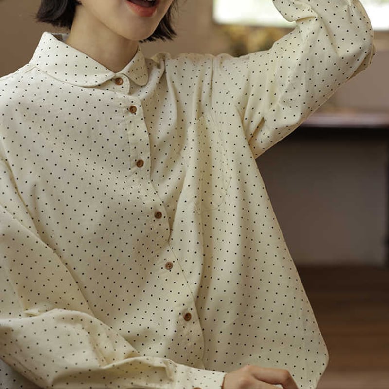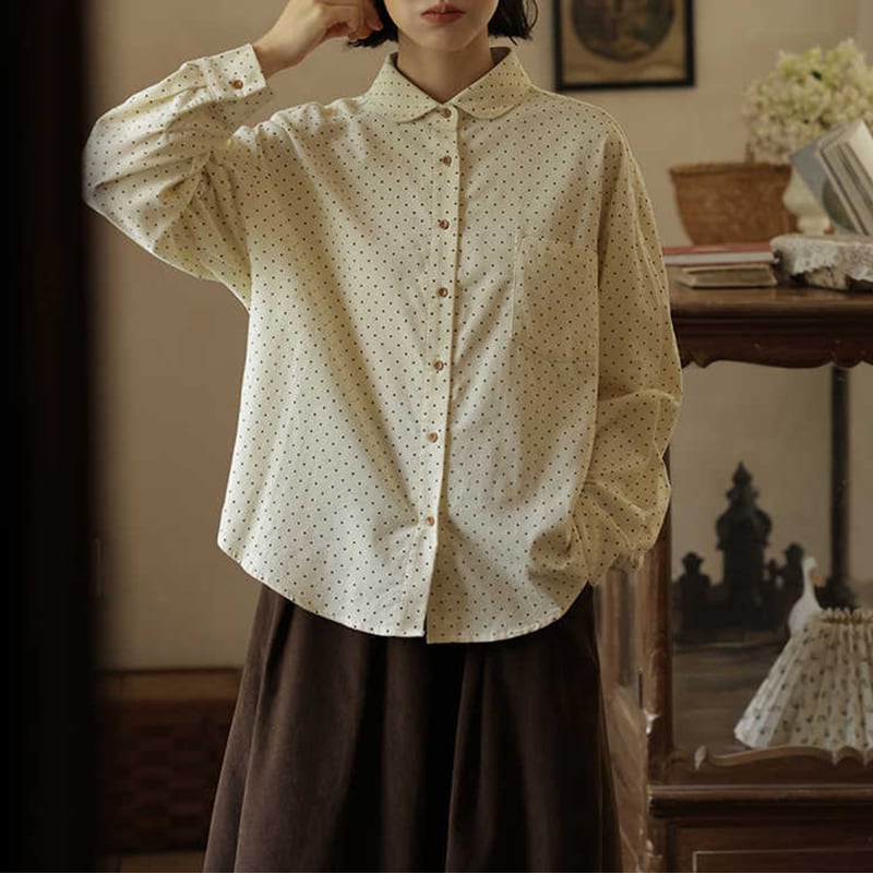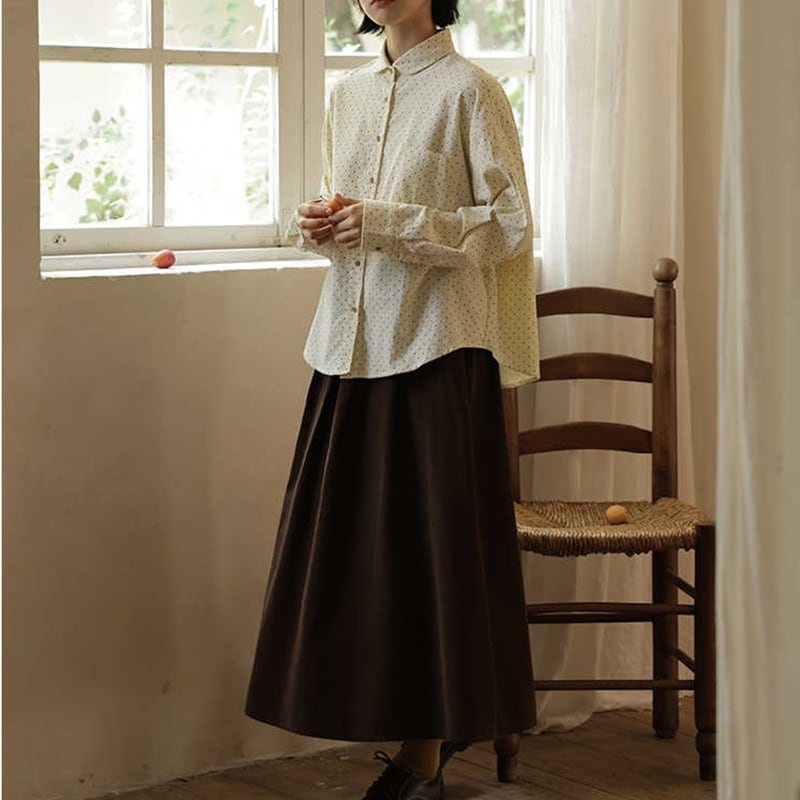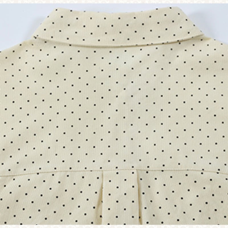 優しいコーデュロイ生地に水玉模様をあしらったブラウス。