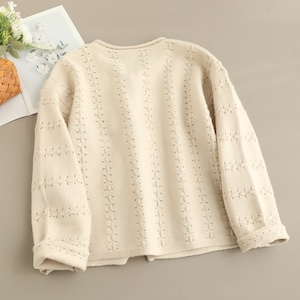 柔らかな雰囲気の編み地が、装いに優しいぬくもりを添えます。