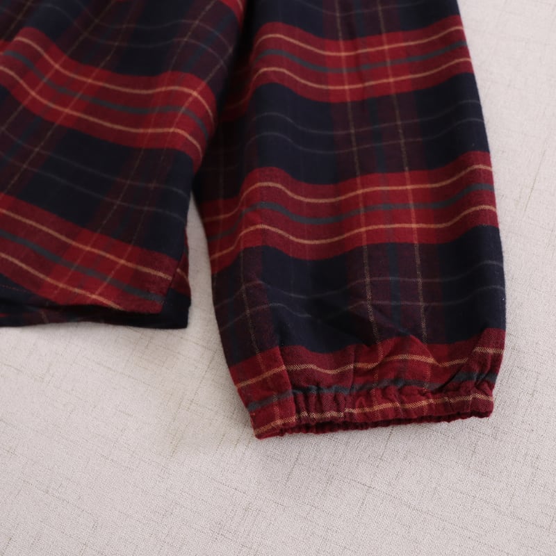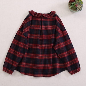 丸襟が可愛らしいアクセントになった、起毛コットンのチェック柄ブラウス。