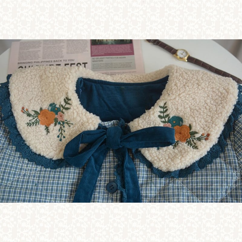 ピーターパンカラーポケット刺繍チェック柄コットンジャケット W1631