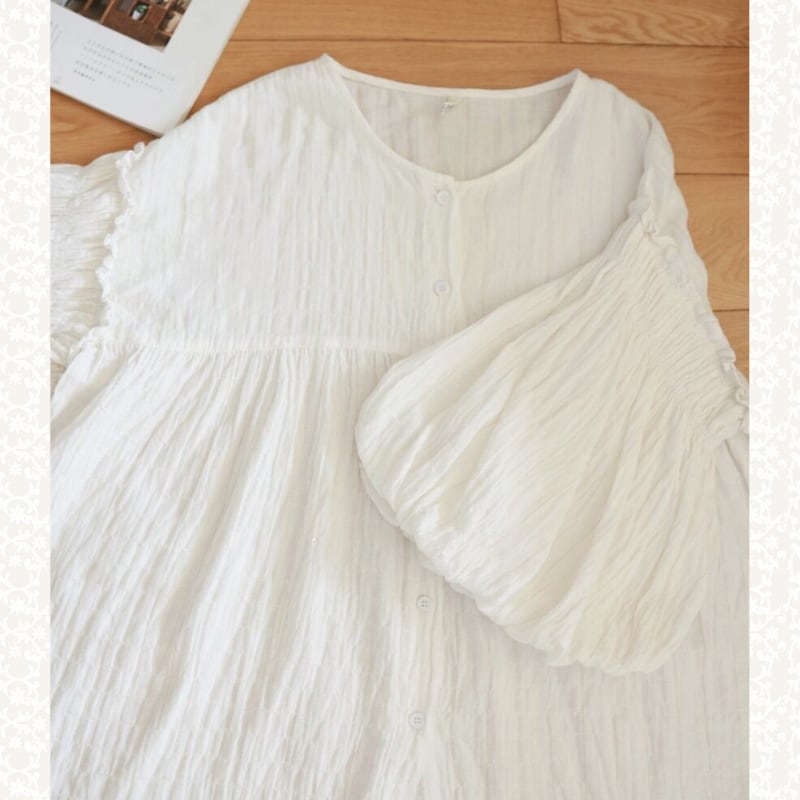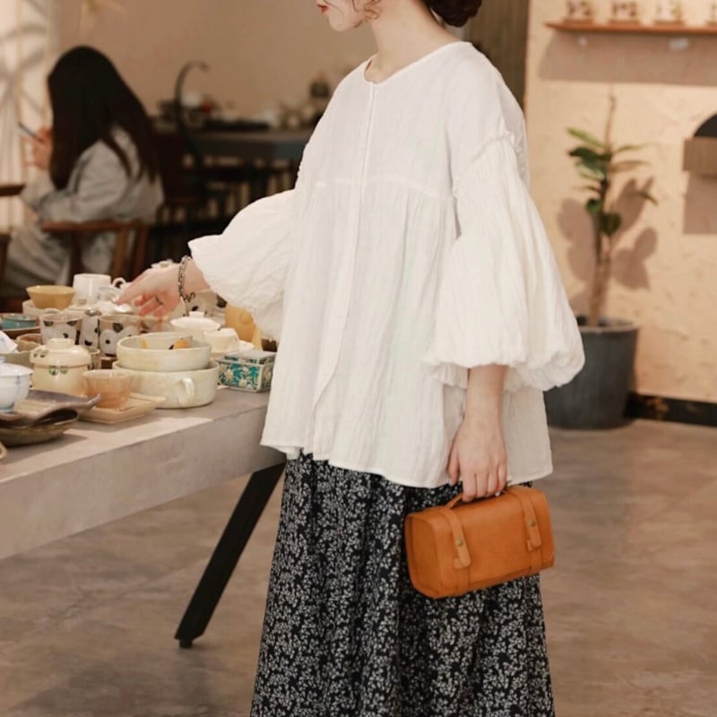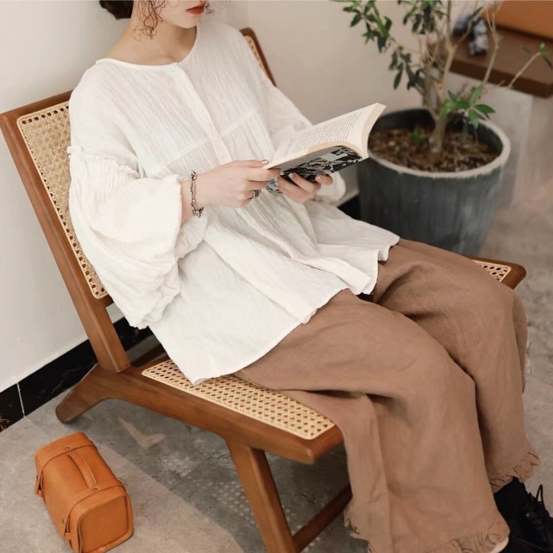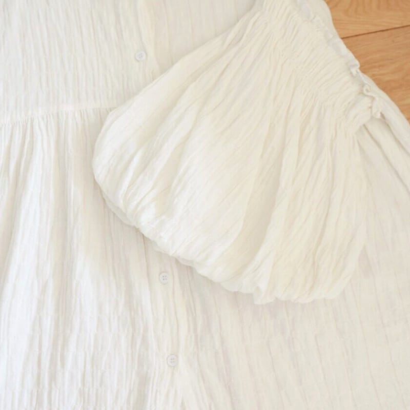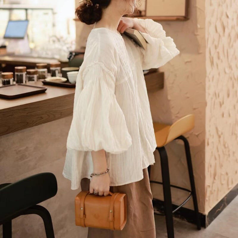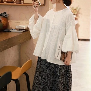 ふんわりとしたパフスリーブがやさしい印象を与えるブラウス。