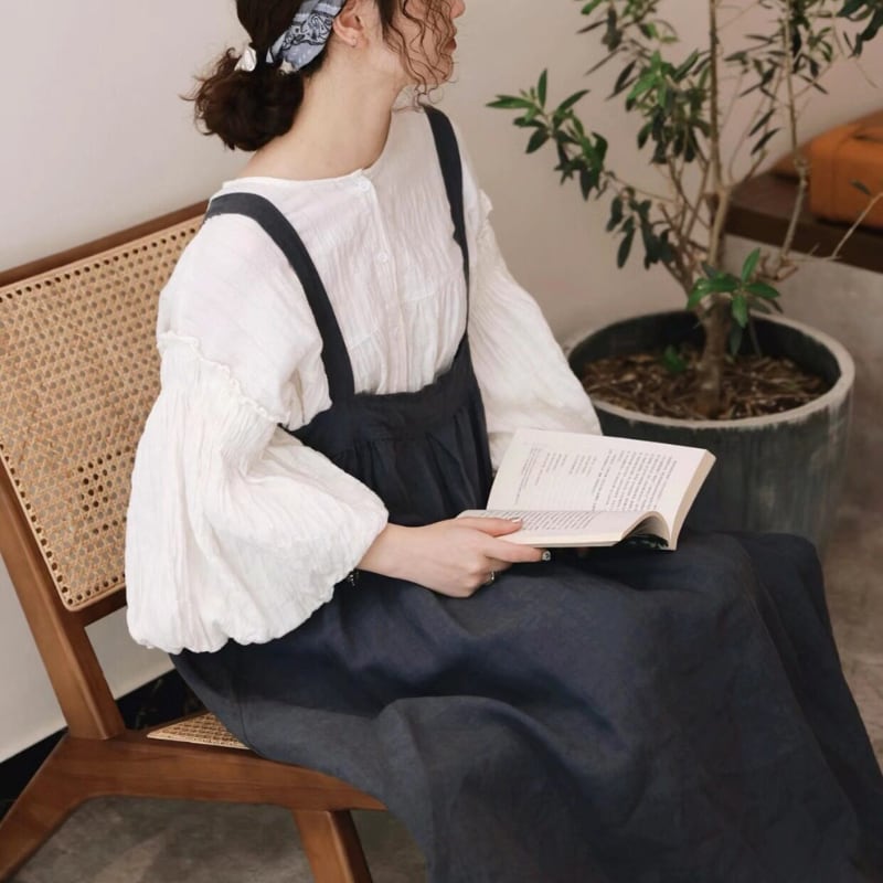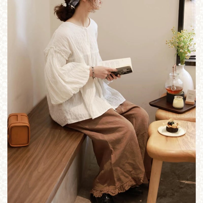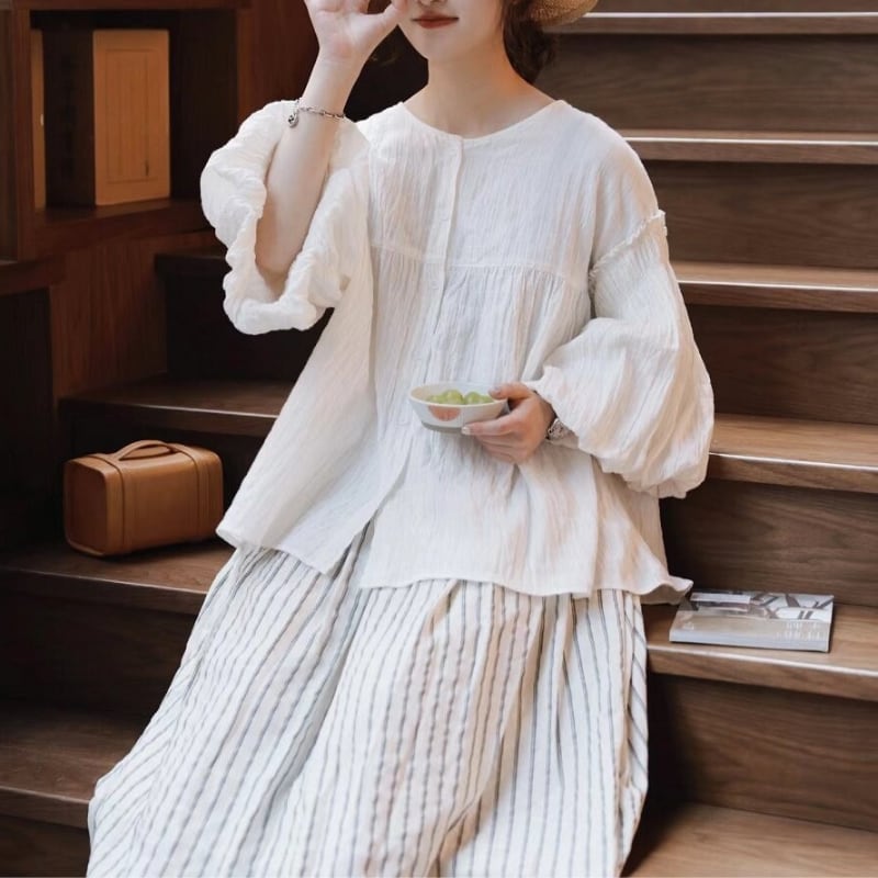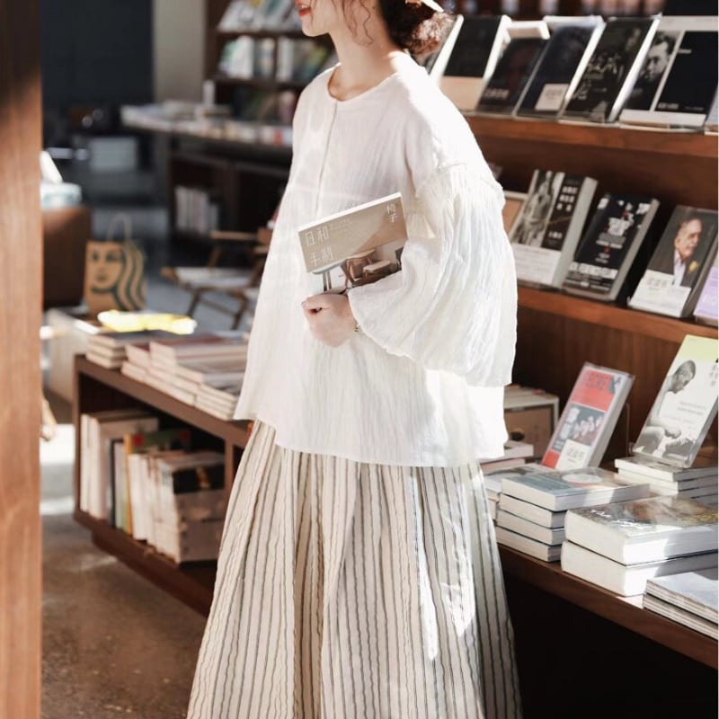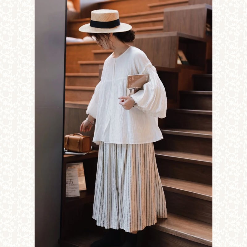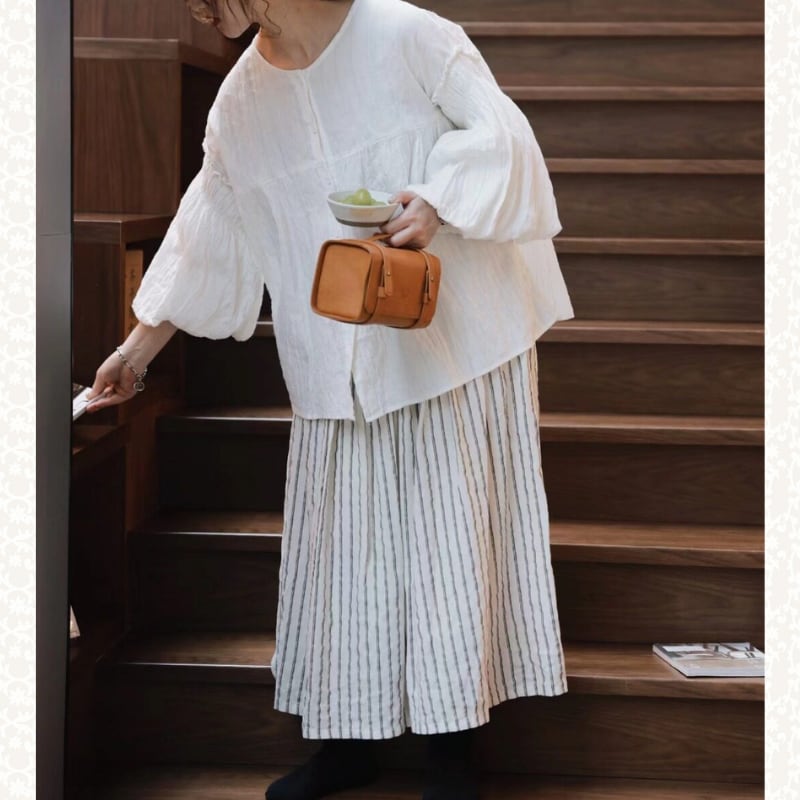 ふんわりとしたパフスリーブがやさしい印象を与えるブラウス。