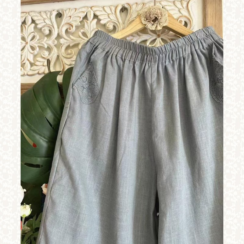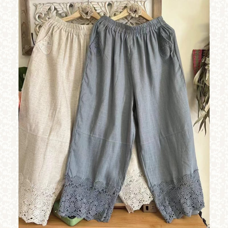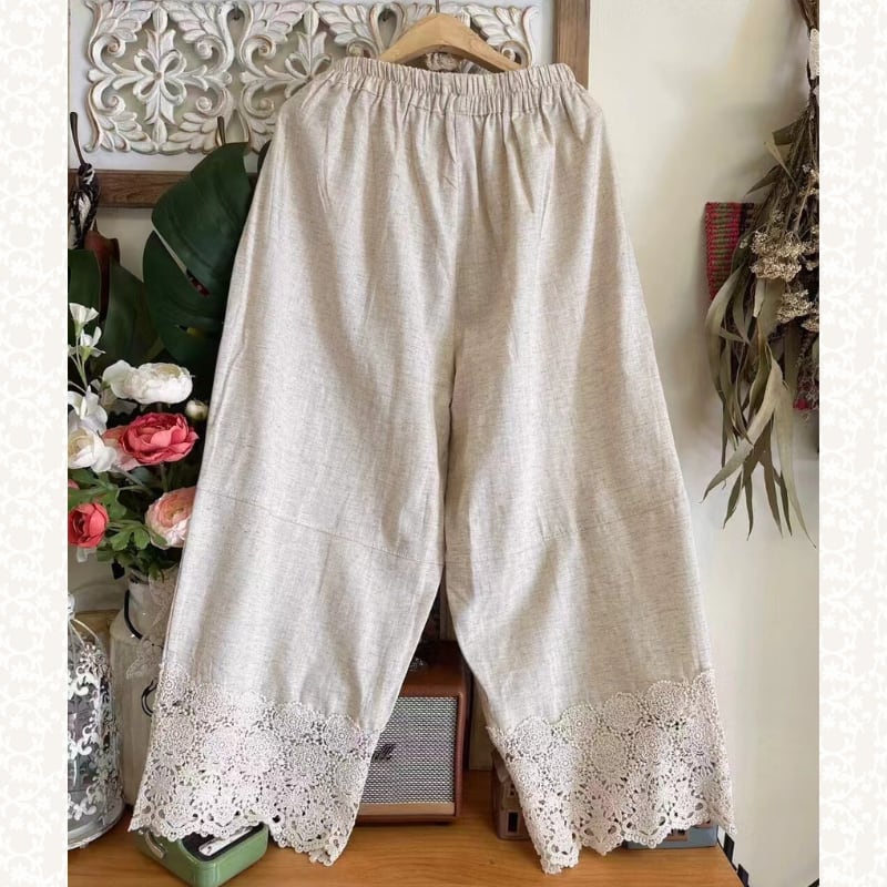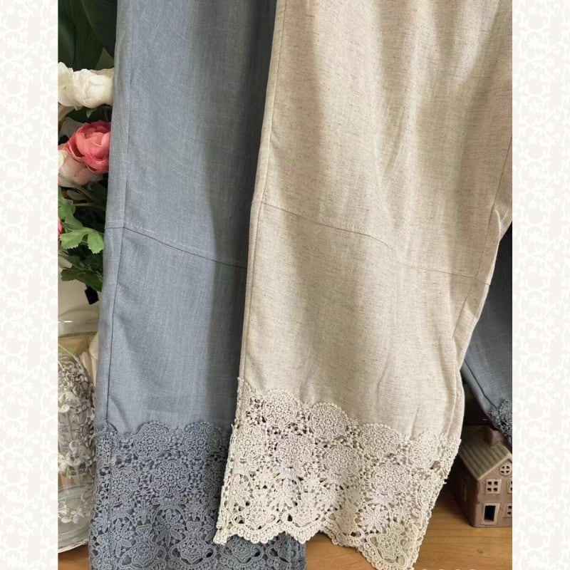 裾にレースヘムをあしらった、軽やかな印象のクロップドパンツ。