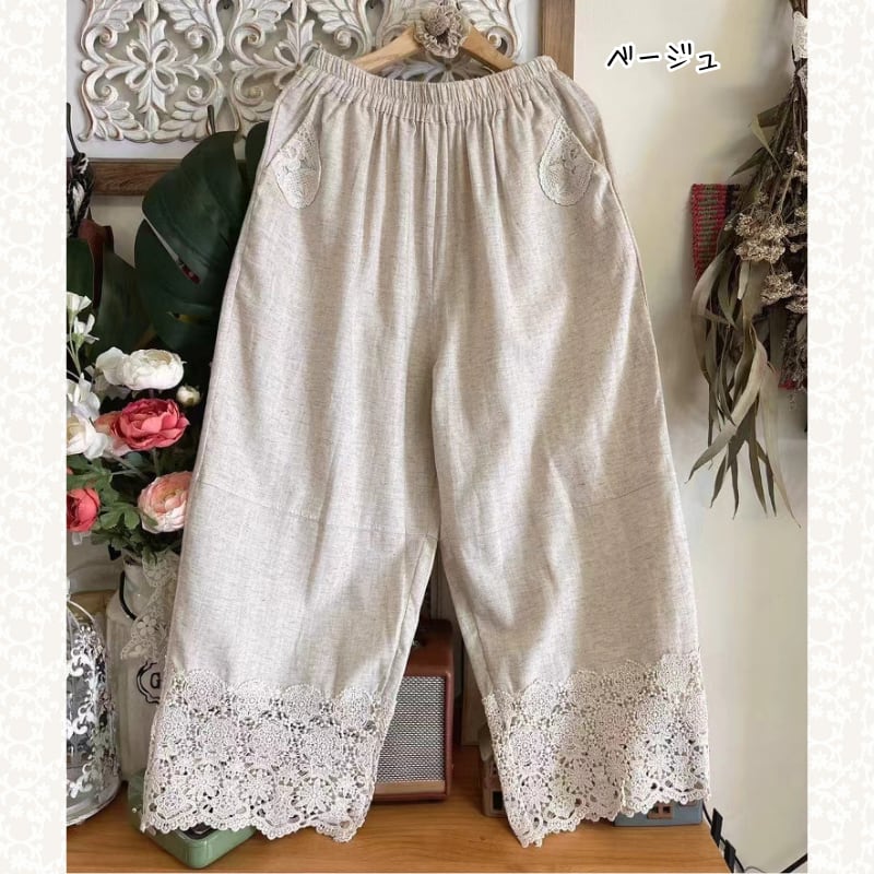 裾レースヘムクロップドパンツ W1683