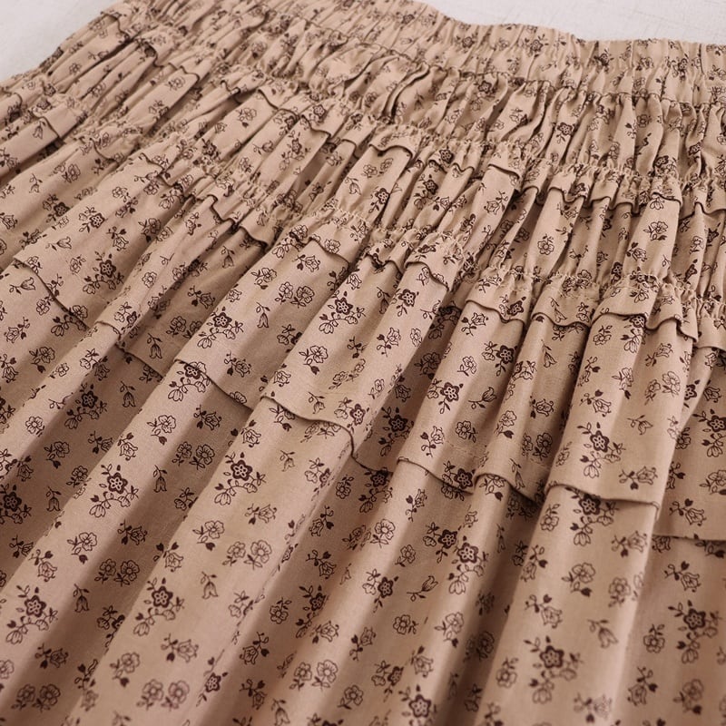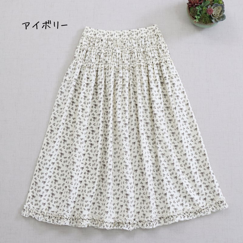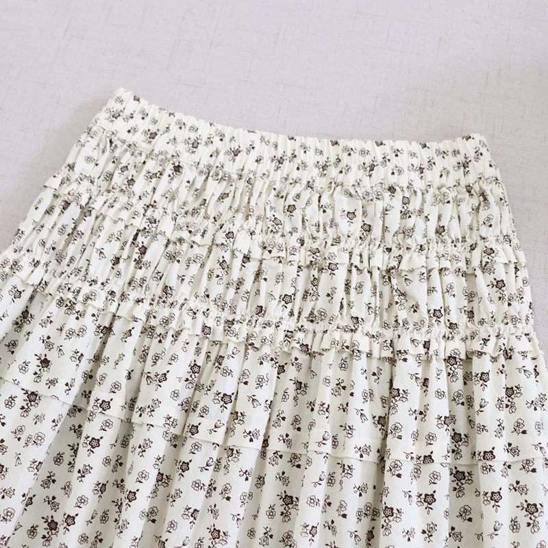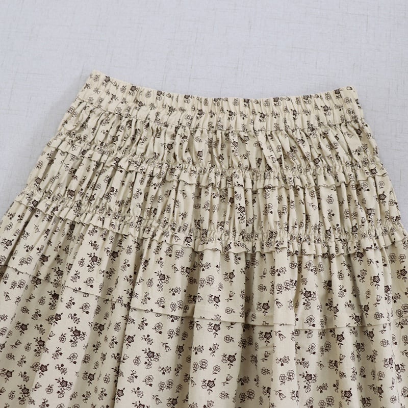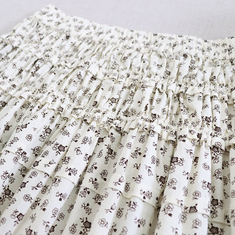 花柄プリント裾フリルスカート W1685