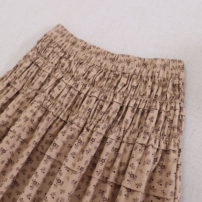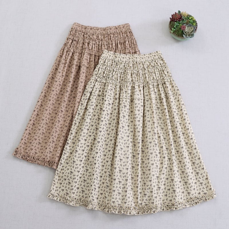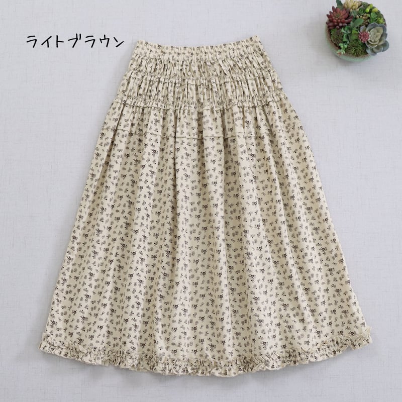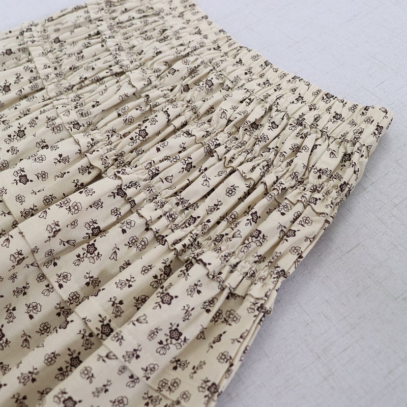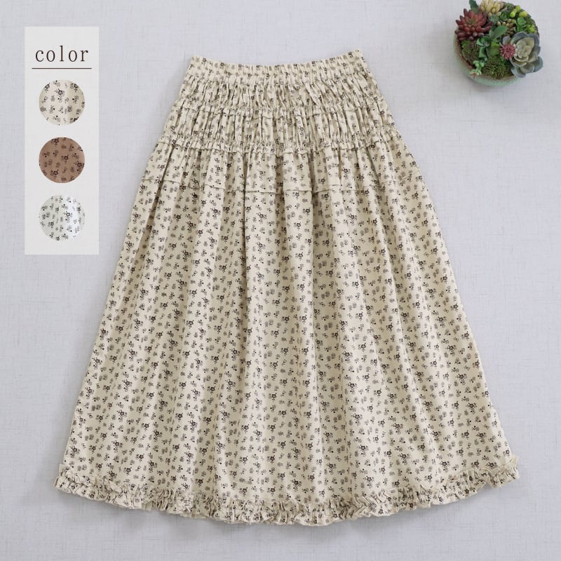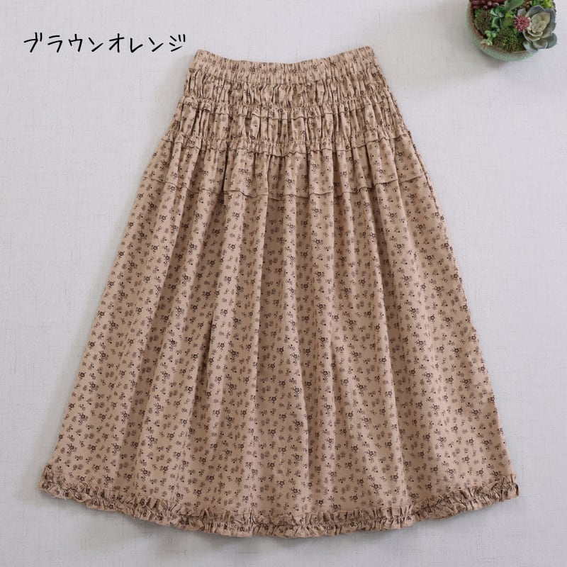 花柄プリント裾フリルスカート W1685