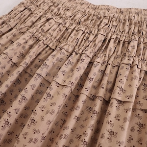 花柄プリントと裾フリルがフェミニンな印象を与えるスカート。