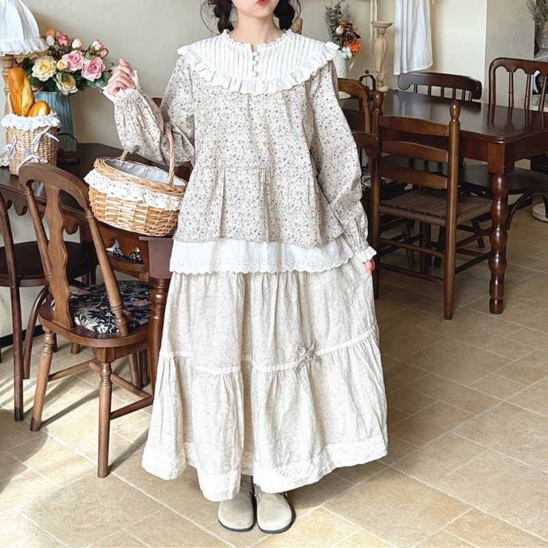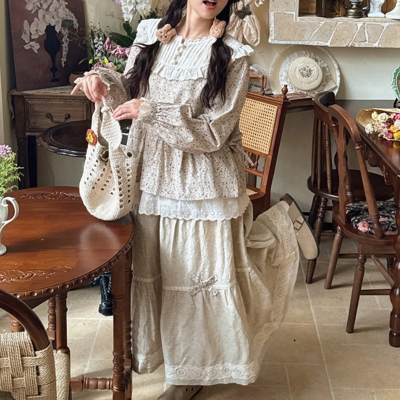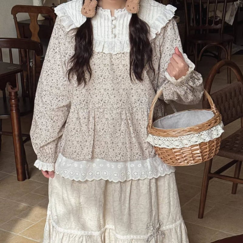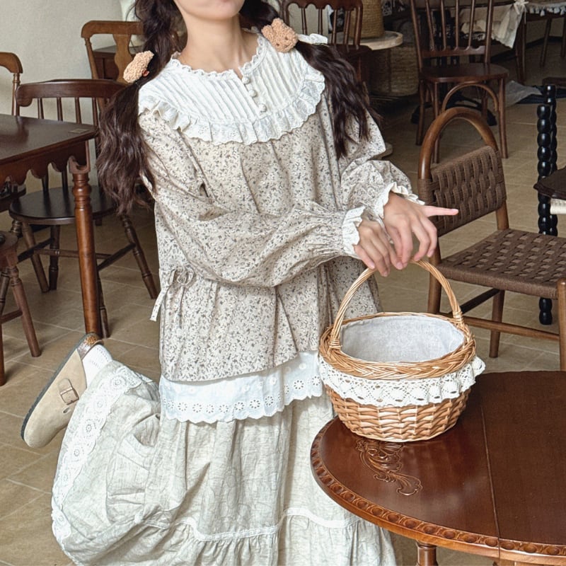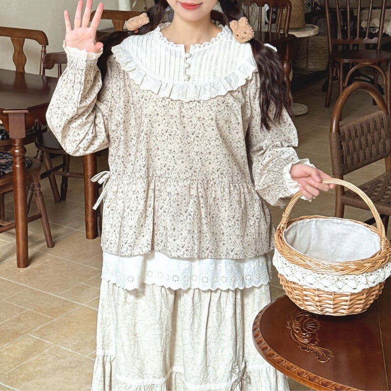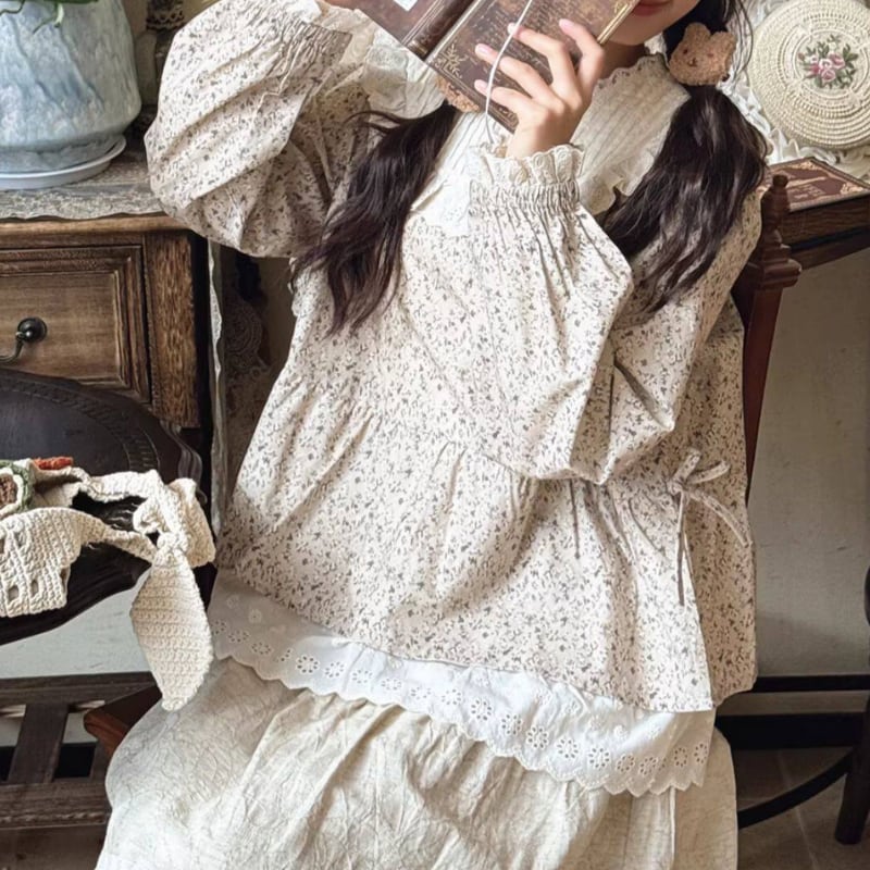 レーストリム花柄ギャザーシャツ W1686