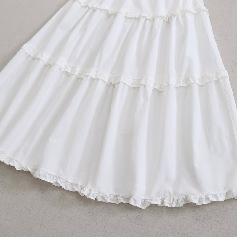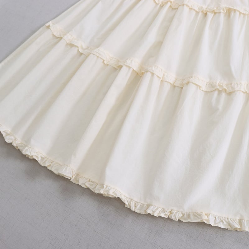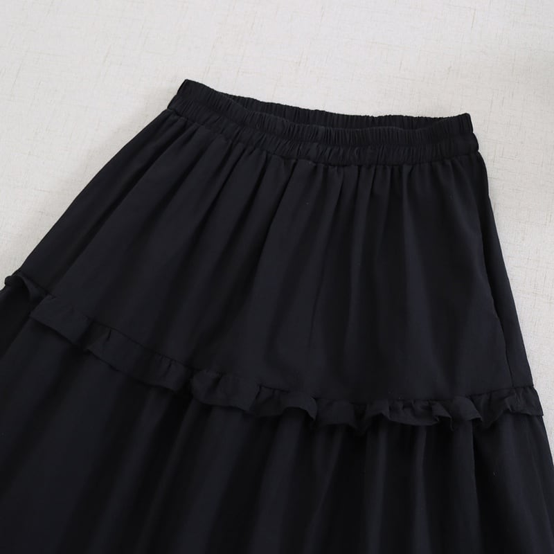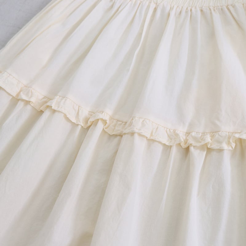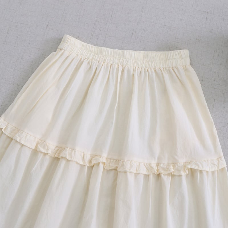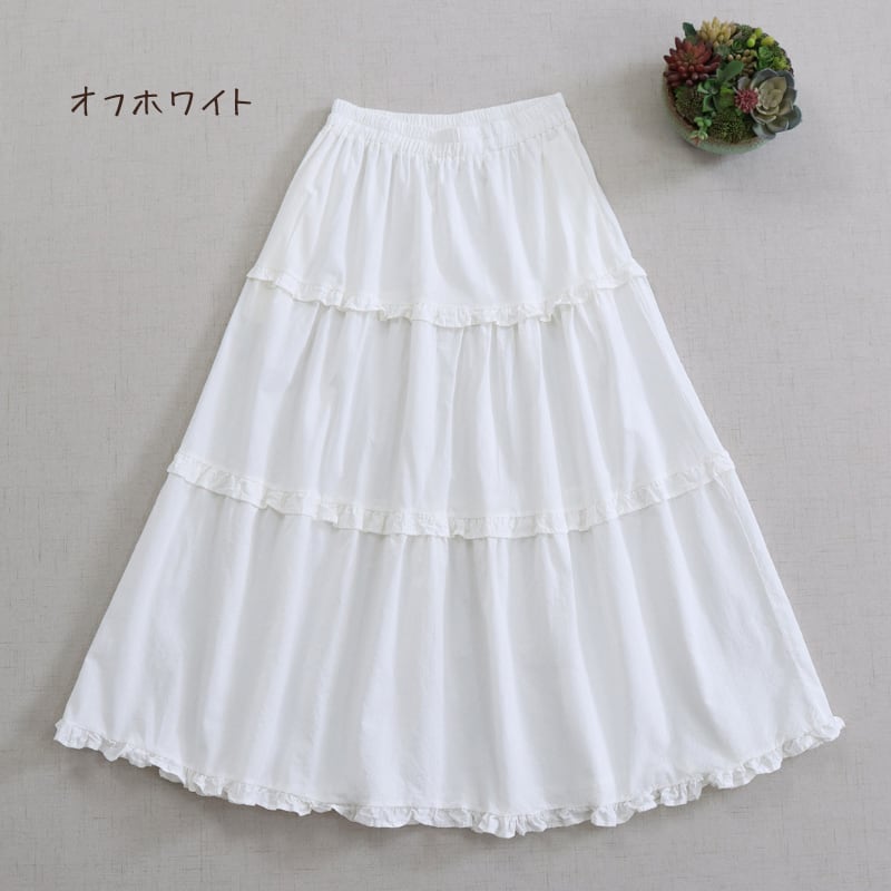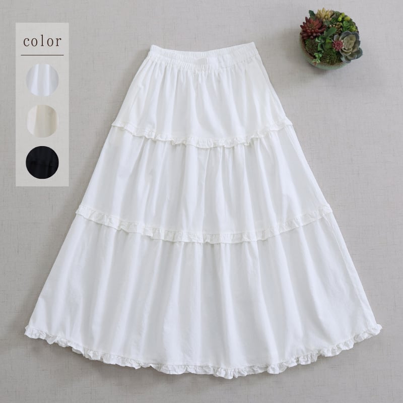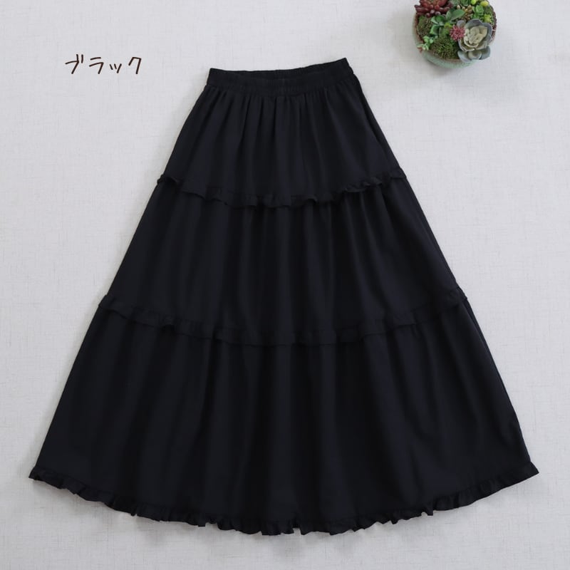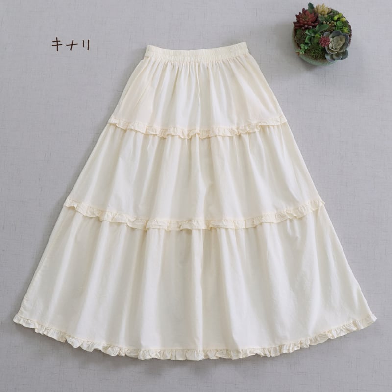 重ね着にぴったりな、フリルティアードが軽やかに揺れるスカート。