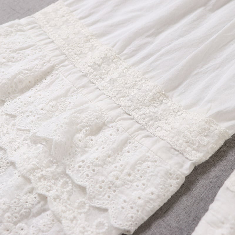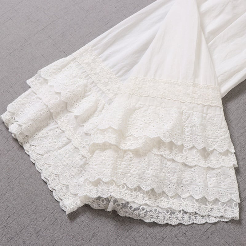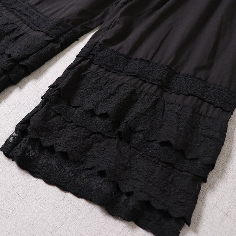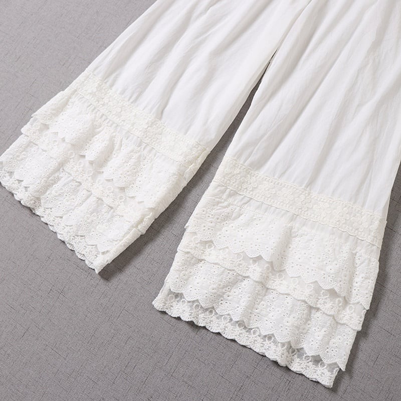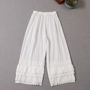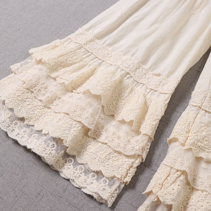 多層レースがやさしく重なる、表情豊かなワイドレッグペチパンツ。