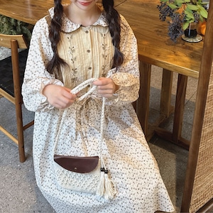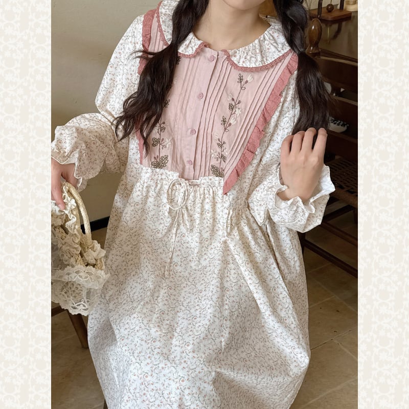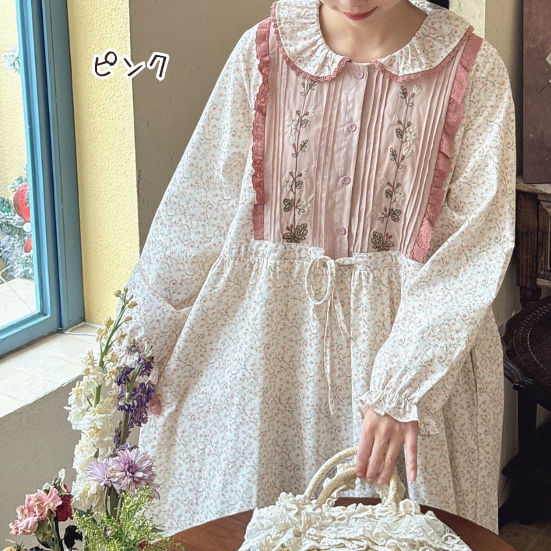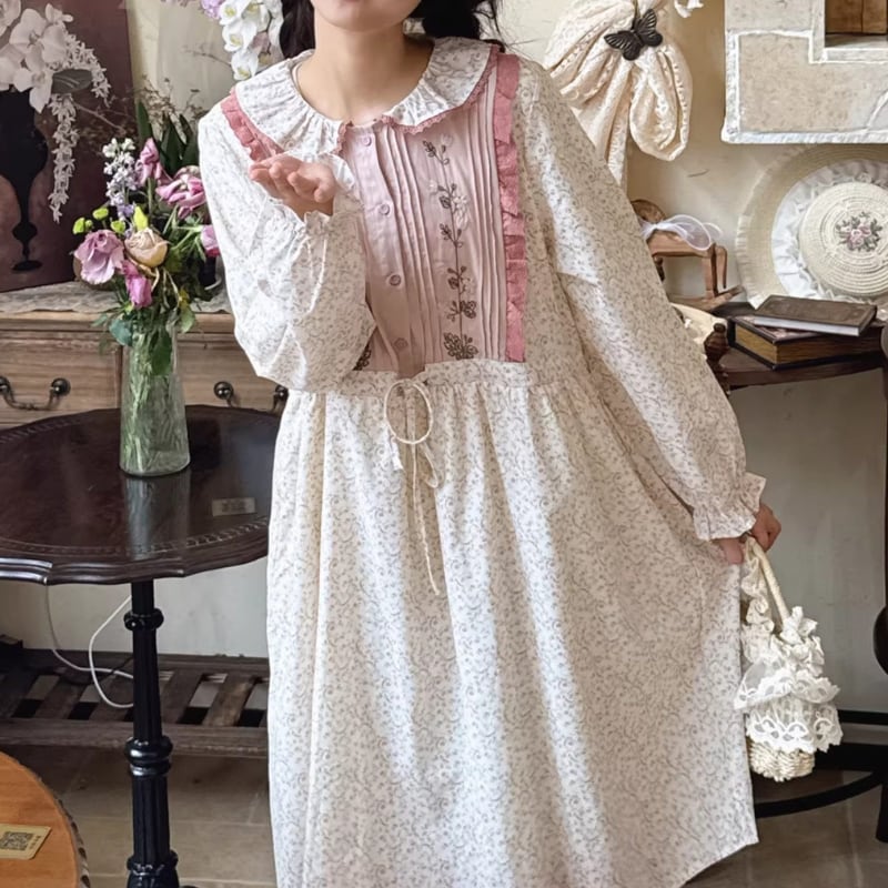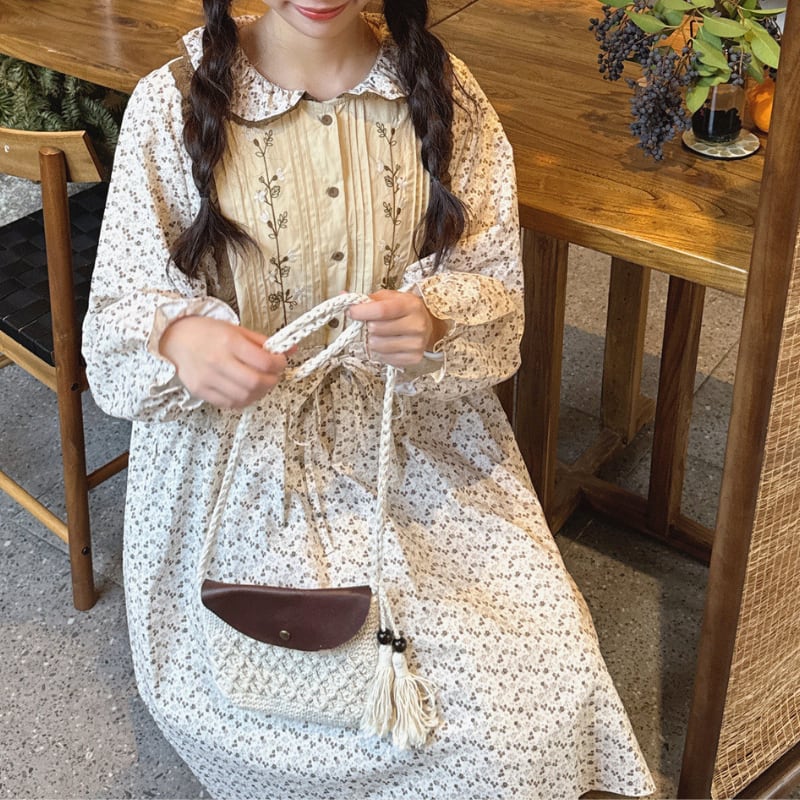 刺繍とパッチワークが調和した、どこか懐かしさを感じるワンピース。