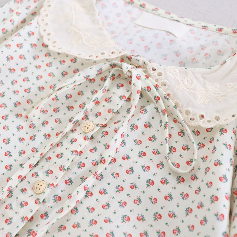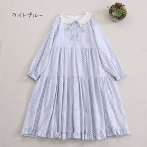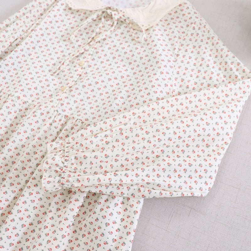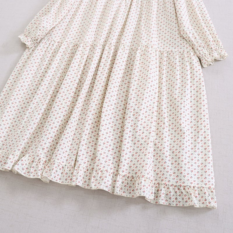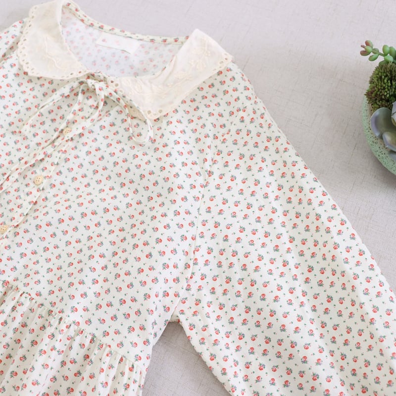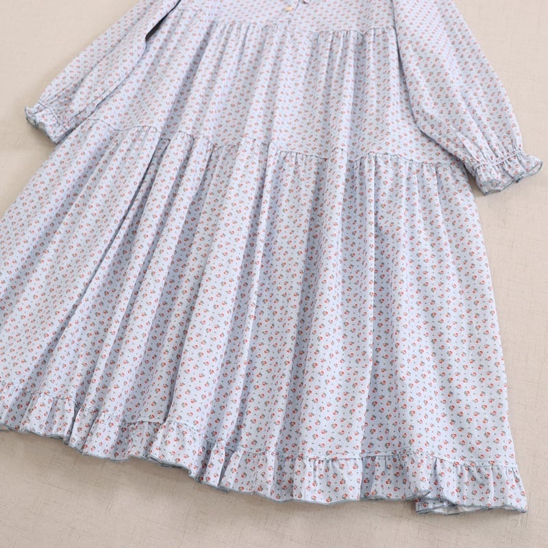 ハーフボタンと小花柄が可憐な印象のティアードワンピース。