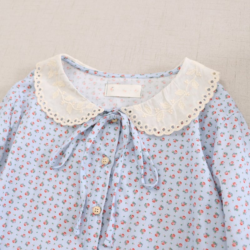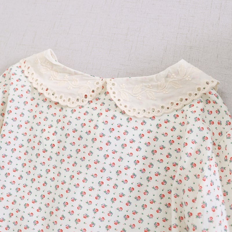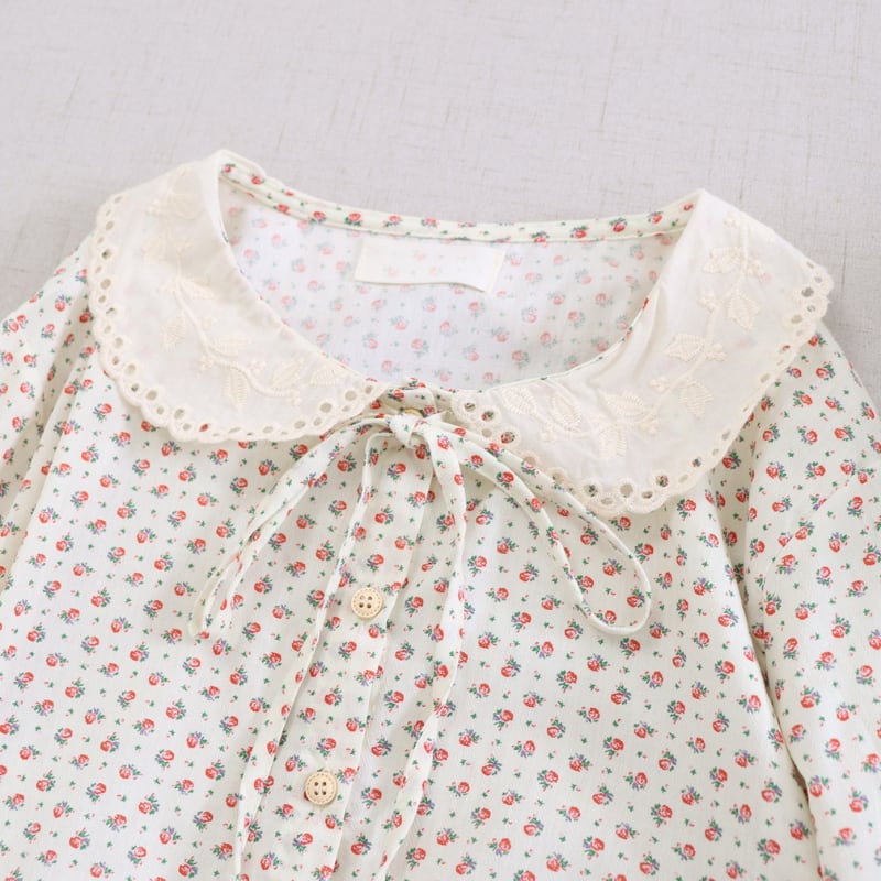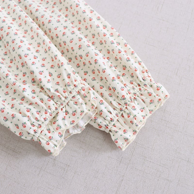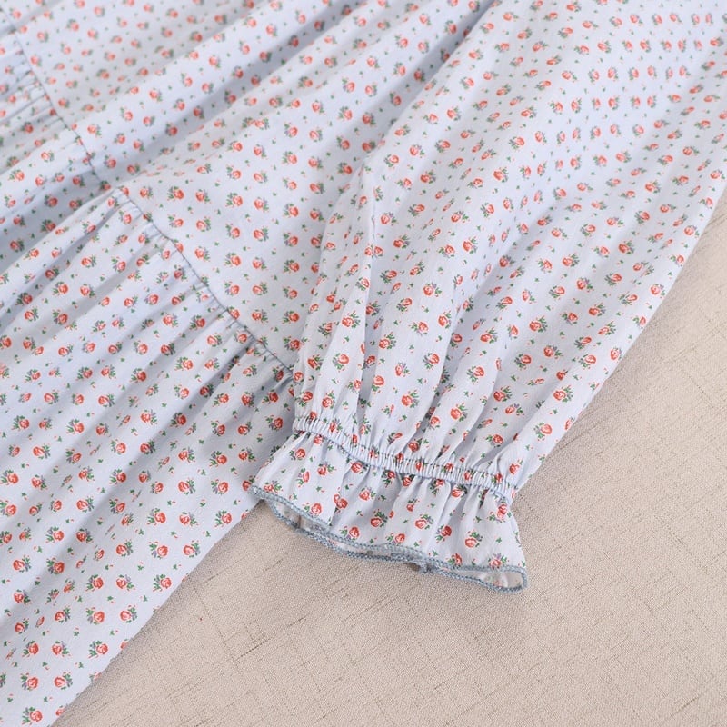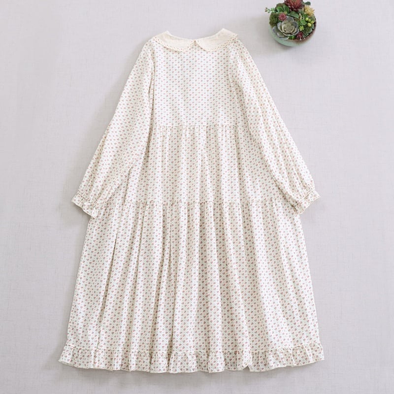 ハーフボタンと小花柄が可憐な印象のティアードワンピース。